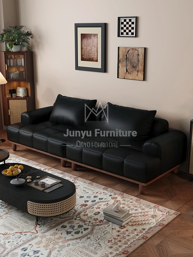 French Vintage Thickened Genuine Leather Black Sugar Cloud Sofa for Small Apartments - Mid-century Style Latex Sofa, New Arrival 2025