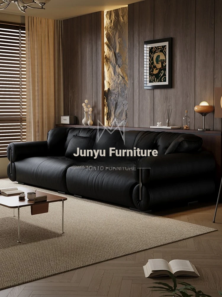 Italian Luxury Minimalist Black Sugar Cloud Sofa - Premium Top-Grain Leather, Perfect for Modern Small Spaces, Featuring Chic Velvet Touch and Cozy Down Fill