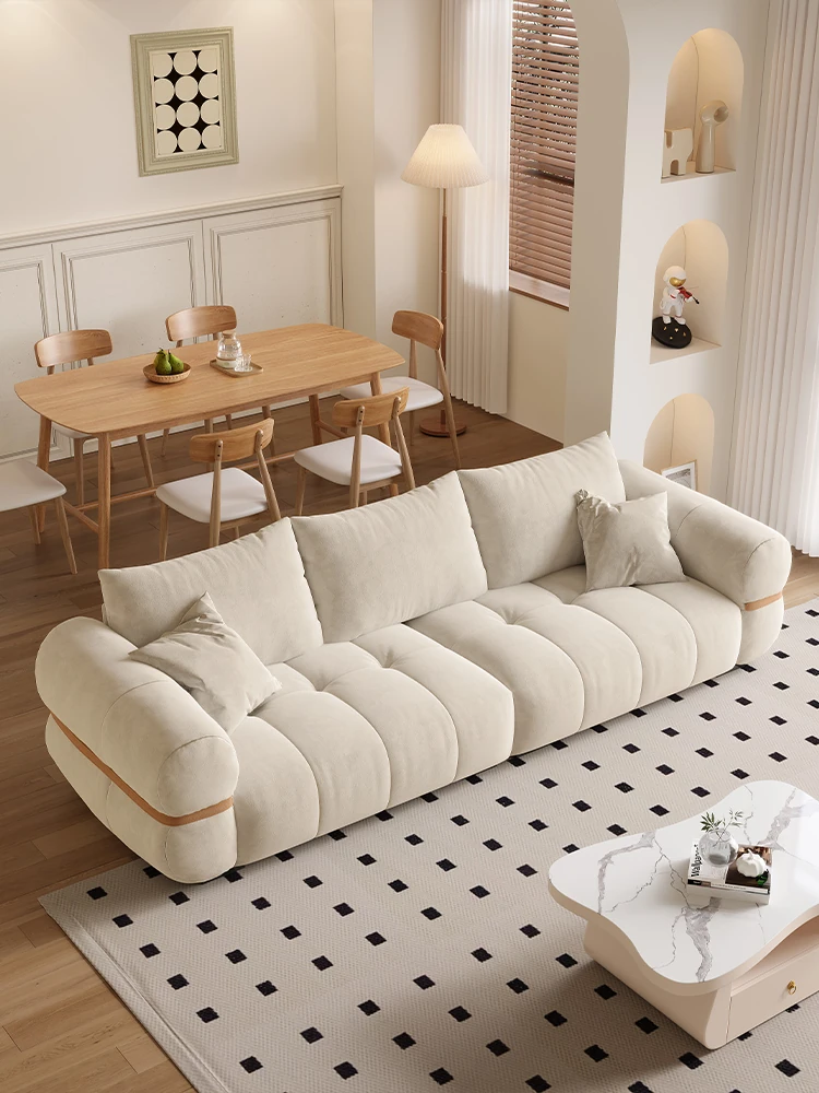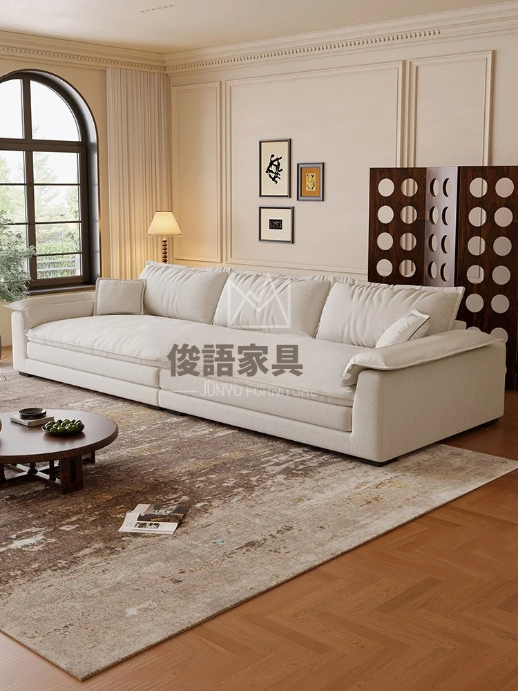 フランス風クリーミーな雪のようなファブリックソファ、リビングルームにぴったりのストレートデザイン、小型住宅にも最適な麻素材のラウンジ感漂うクラウドソファ新登場!