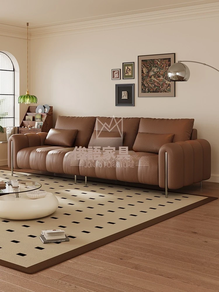 イタリアンミニマリズムのキャットスクラッチレザーソファ - モダンなヴィラや広々としたリビングにぴったり!高いアームレストで快適さを追求したスタイリッシュなデザイン。あなたのリビングを洗練された空間に変身させます!