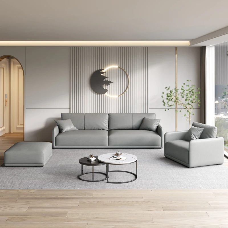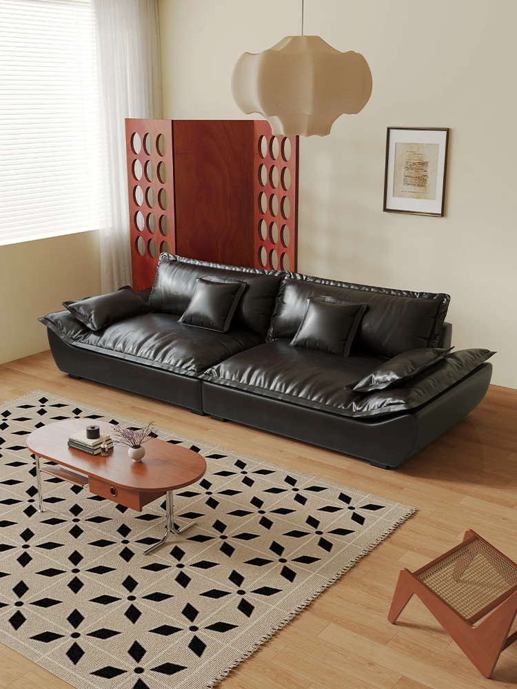イタリアンミニマル真皮コットンマシュマロソファー|モダンなライトラグジュアリー|小さなリビングにぴったりのデザイナー直排デザイン|2025年新作!