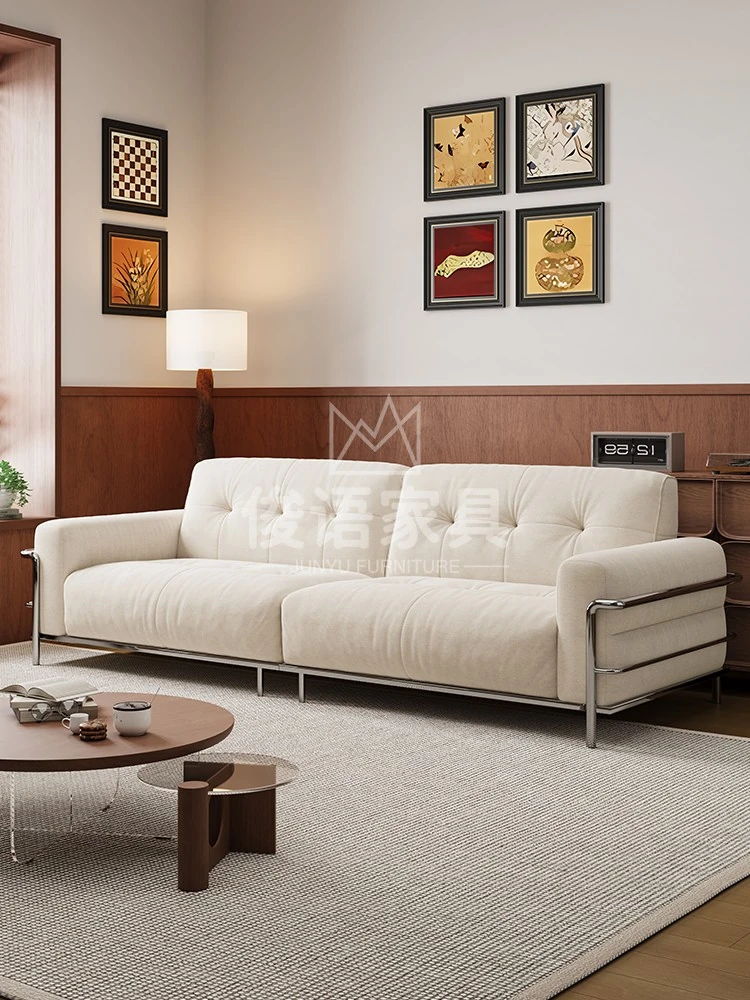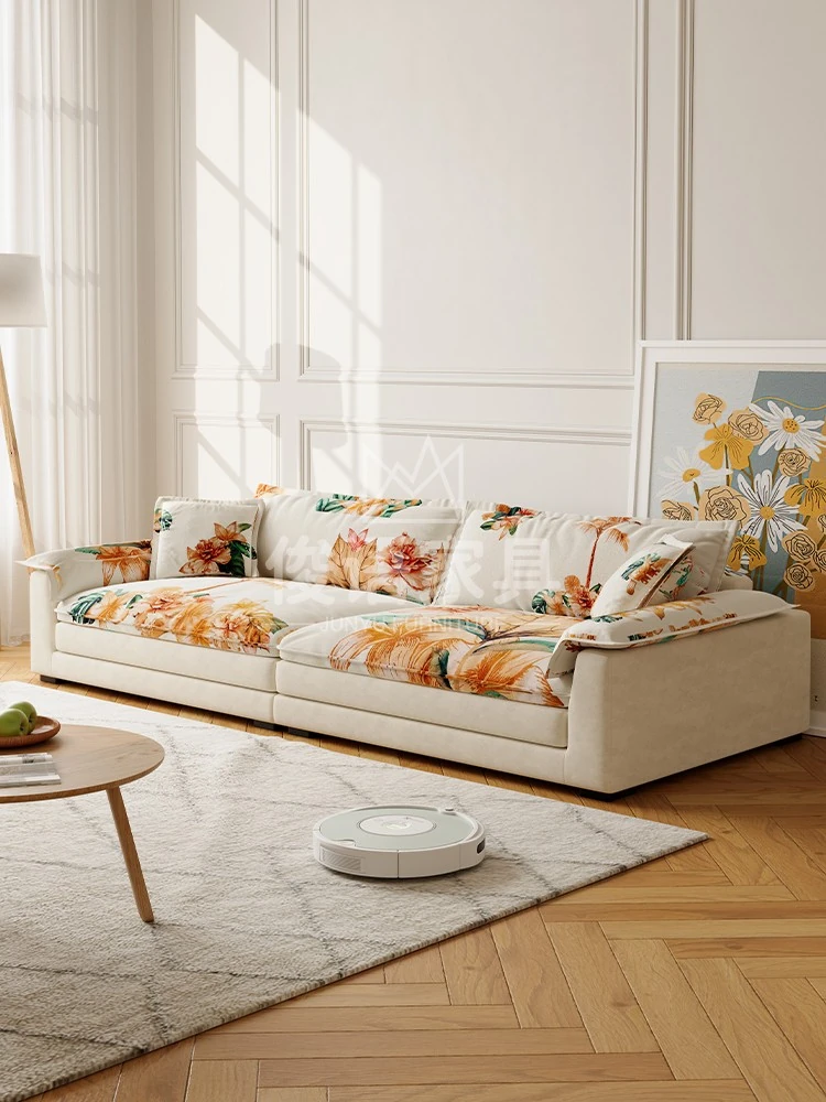 フレンチクリーム風のスノーニット帆布ソファ、リビングルームにぴったり!調整可能な大きな深さのスイートカシスソファで、快適な座り心地を実現。おしゃれで機能的、あなたの空間に華を添えます!