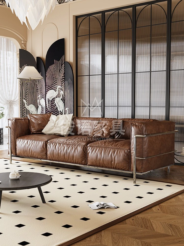 フレンチヴィンテージオイルレザーLC3ソファー - コンパクトなリビングルームに最適なバウハウススタイル!2025年新作登場!高級感あふれるデザインで、居心地の良い空間を演出します。