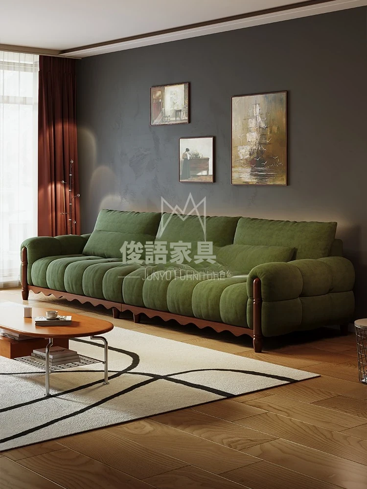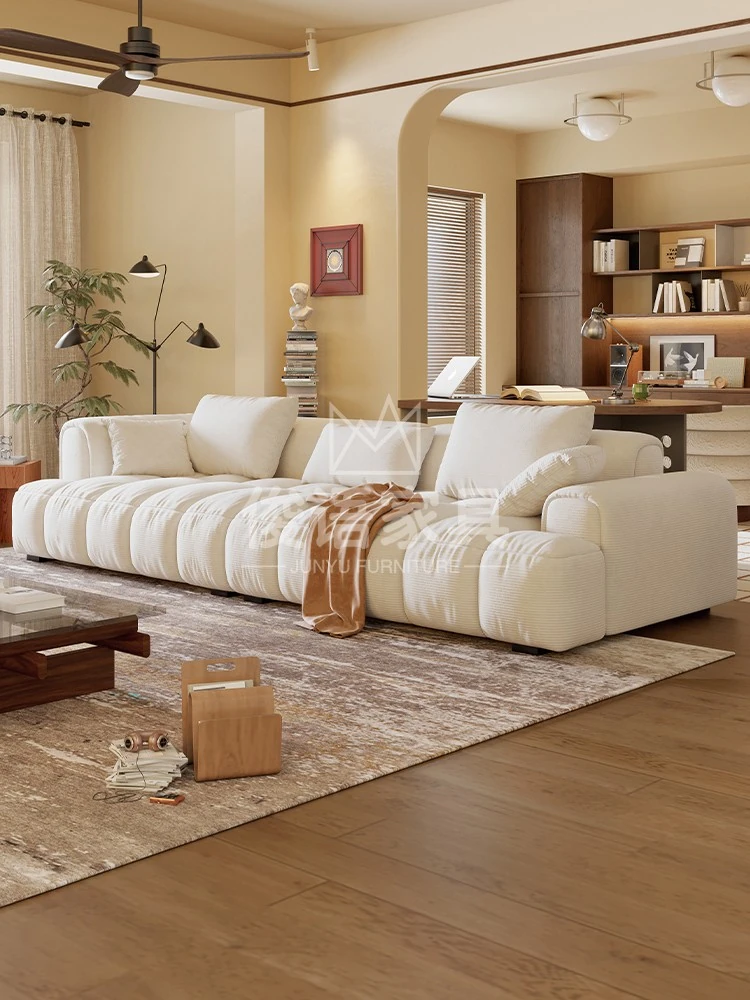 フレンチビンテージ風マシュマロシュークリームソファ - リビングにぴったりな小型軽奢布張りソファ、2025年新作登場!おしゃれで快適な空間を演出します。