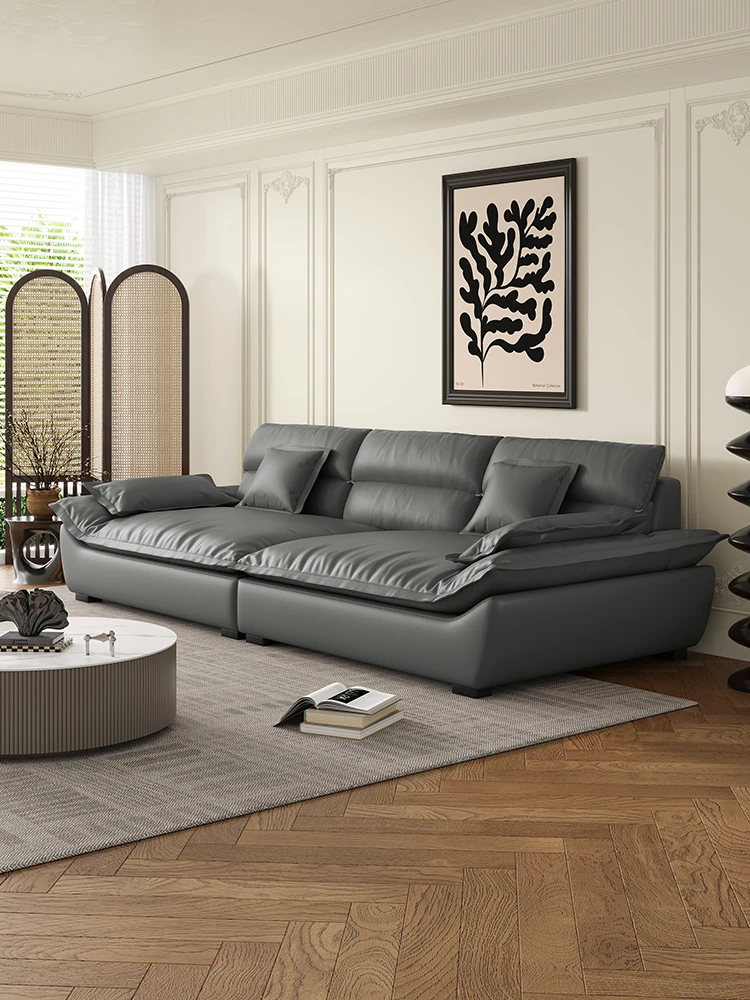 イタリアンミニマリスト小型リビング向けレザー製クラウドソファー、現代的でシンプルなデザイン、猫の爪も気にしない耐久性!2025年新作、快適なリラックスタイムをあなたに。