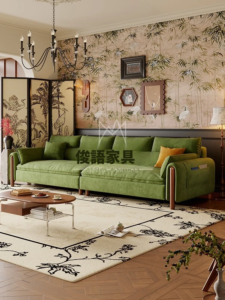 フレンチヴィンテージ風レトログリーンソファー|2025年新作・小型リビングに最適な3人掛けファブリックソファ|おしゃれな中古風デザインでお部屋を華やかに演出!