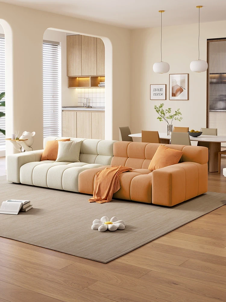 イタリアンミニマルテクスチャー布製トーフブロックソファ - 小さなリビングに最適な現代的シンプルデザイン、背もたれが高く、直線的なスタイルで快適さを追求!
