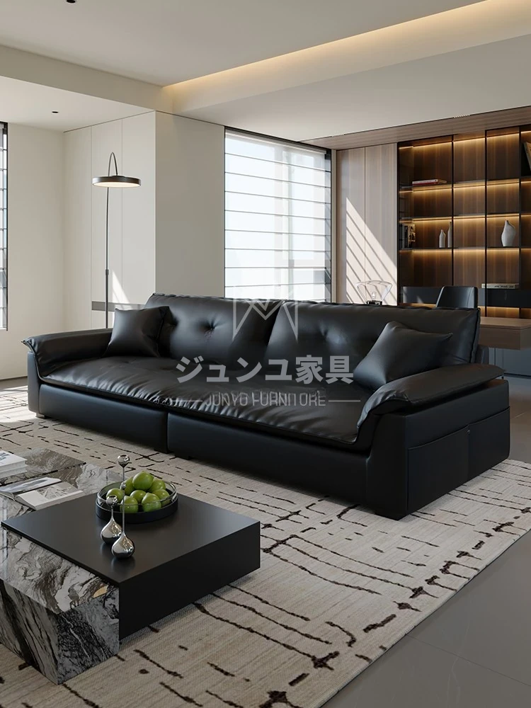 モダンミニマリスト2025新作!防水・引っ掻き防止の猫対応レザー製リビング用ソファー3・4人掛け直線型コンビネーション。快適な座り心地で、お部屋をスタイリッシュに演出!