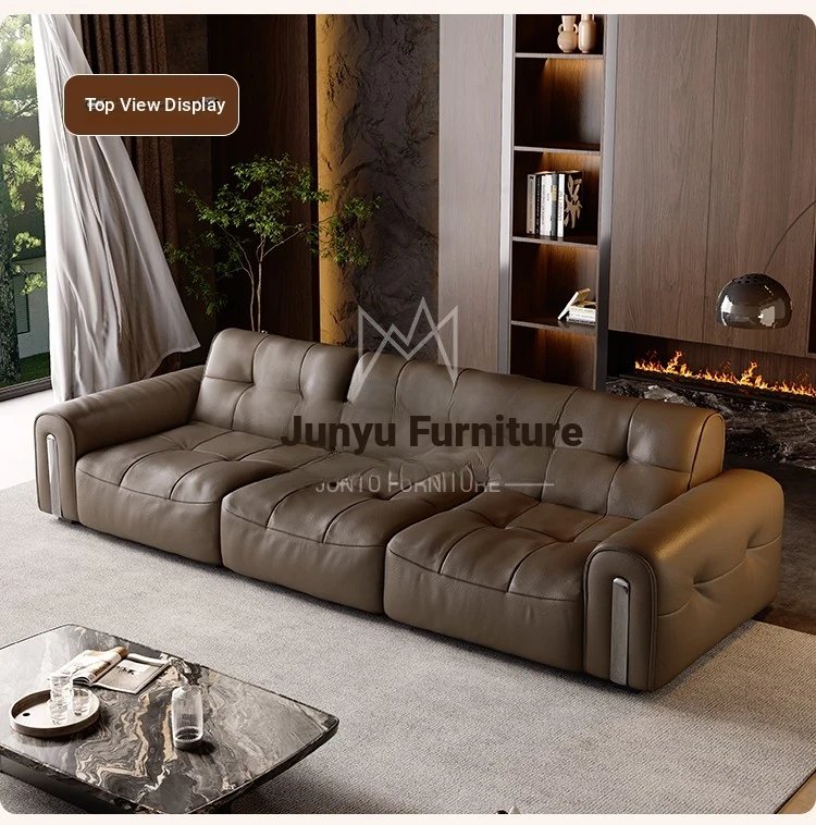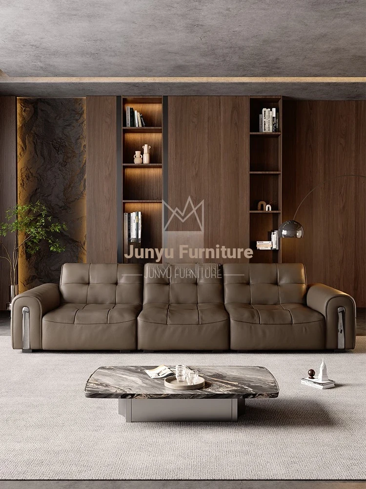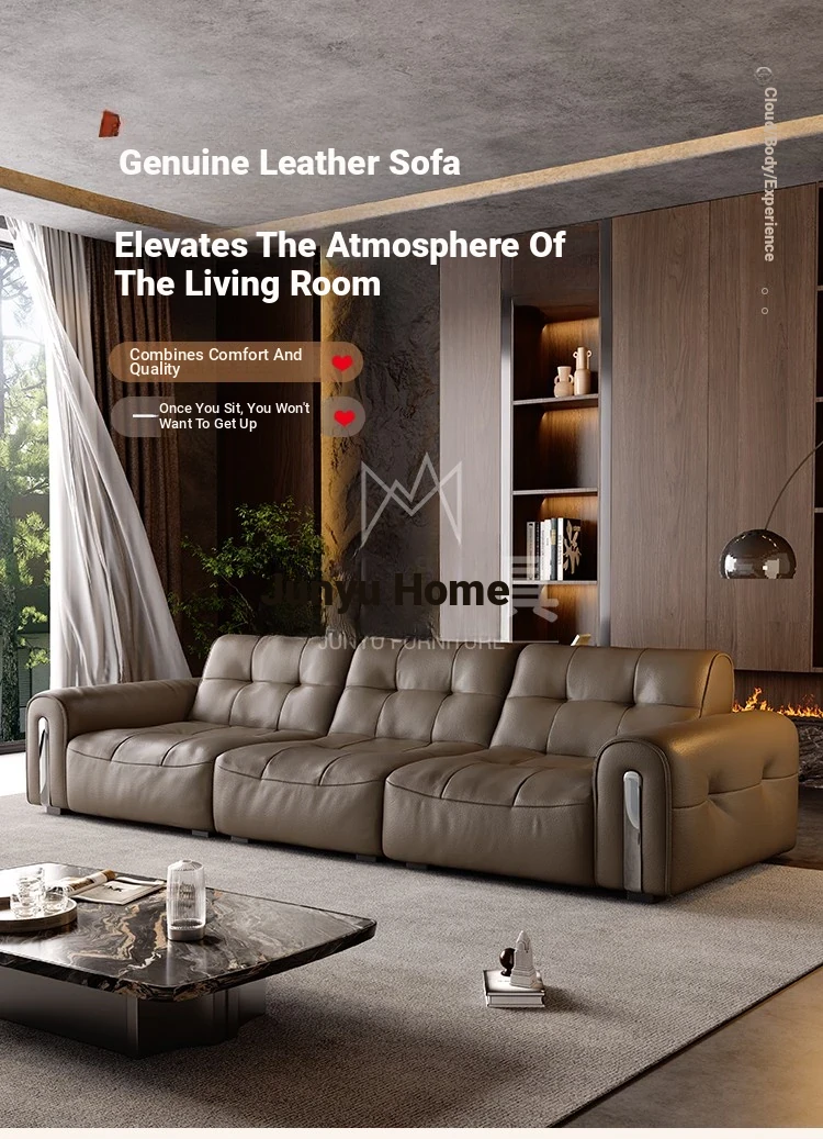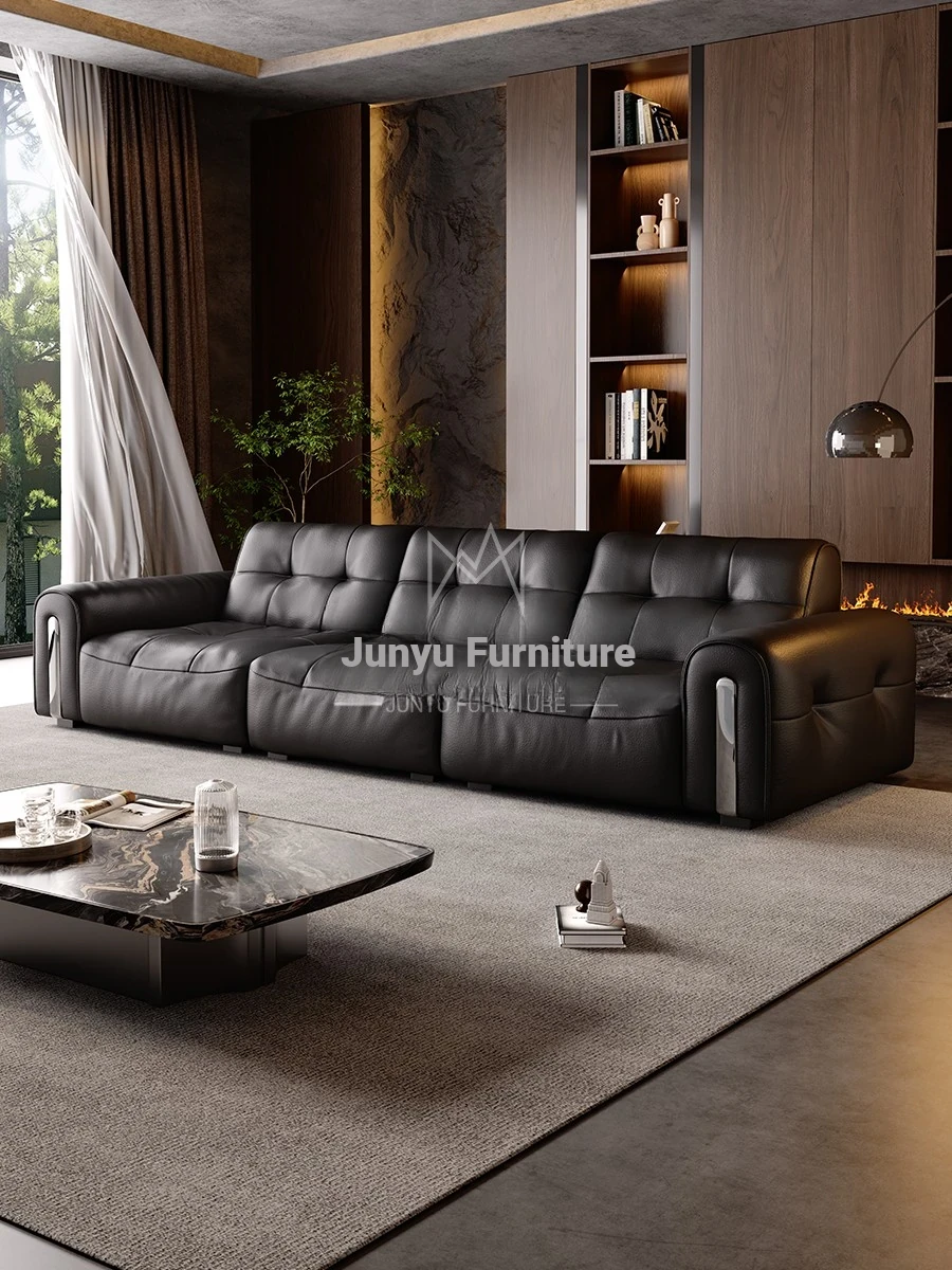 Italian Minimalist Luxury Large Modern Genuine Leather Black King Kong Sofa - High-End Straight Line Duck Down Upholstered Couch for Elegant Living Rooms