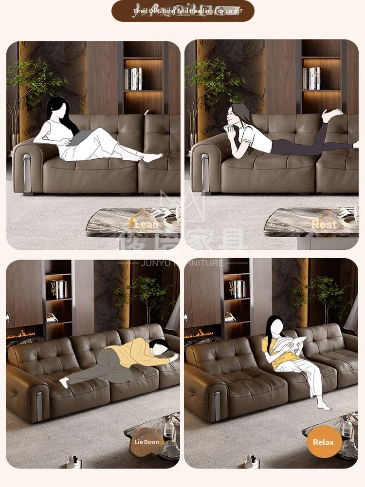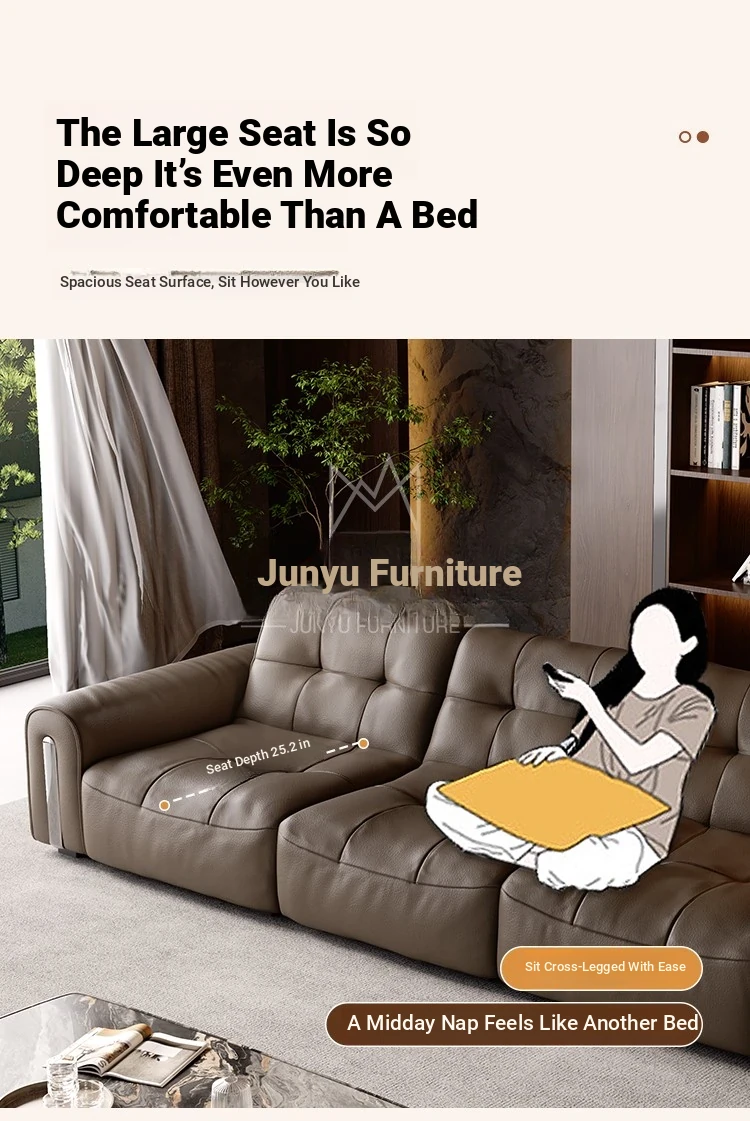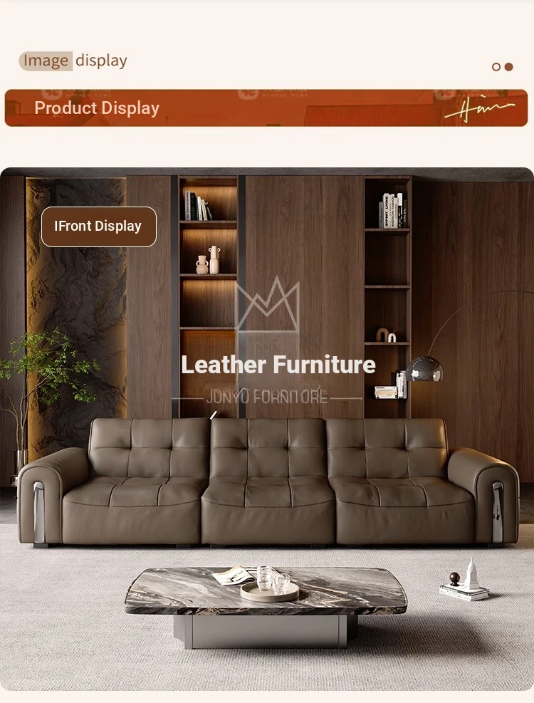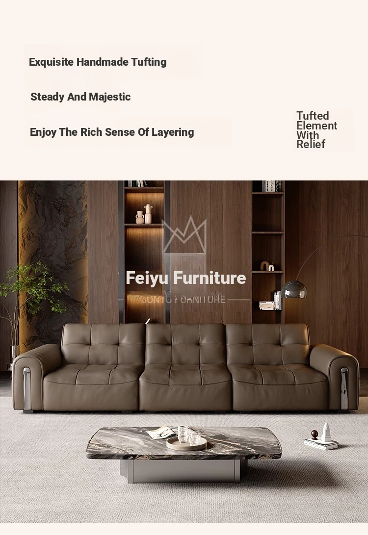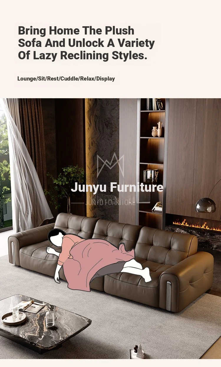 Italian Minimalist Luxury Large Modern Genuine Leather Black King Kong Sofa - High-End Straight Line Duck Down Upholstered Couch for Elegant Living Rooms