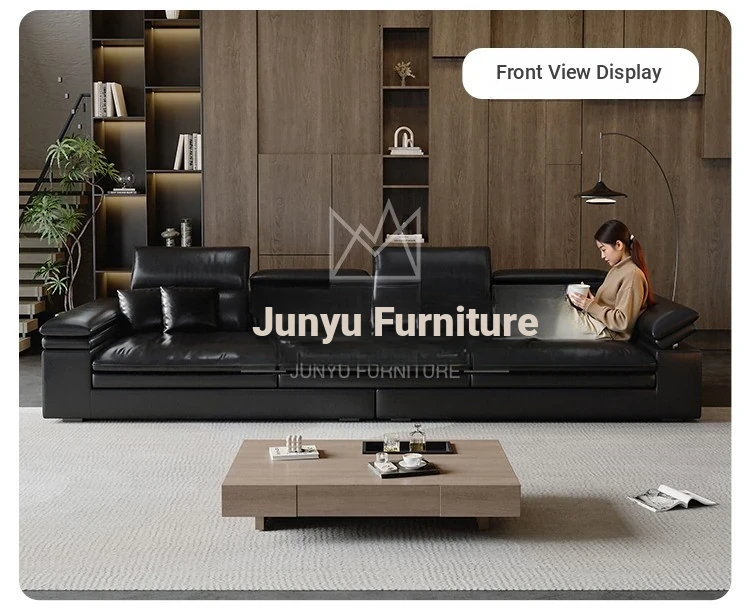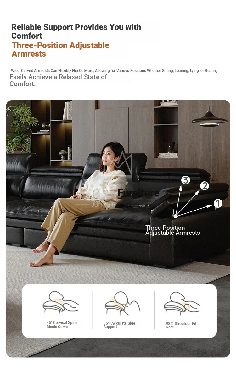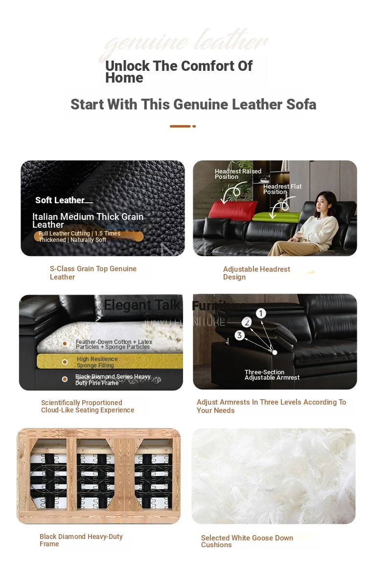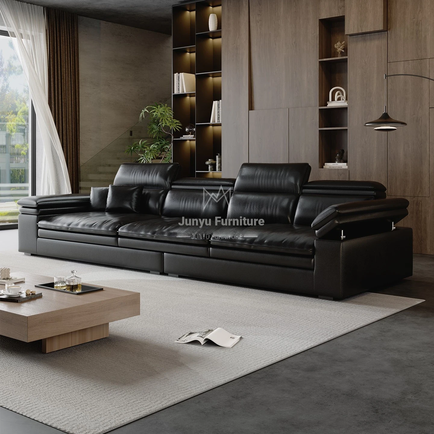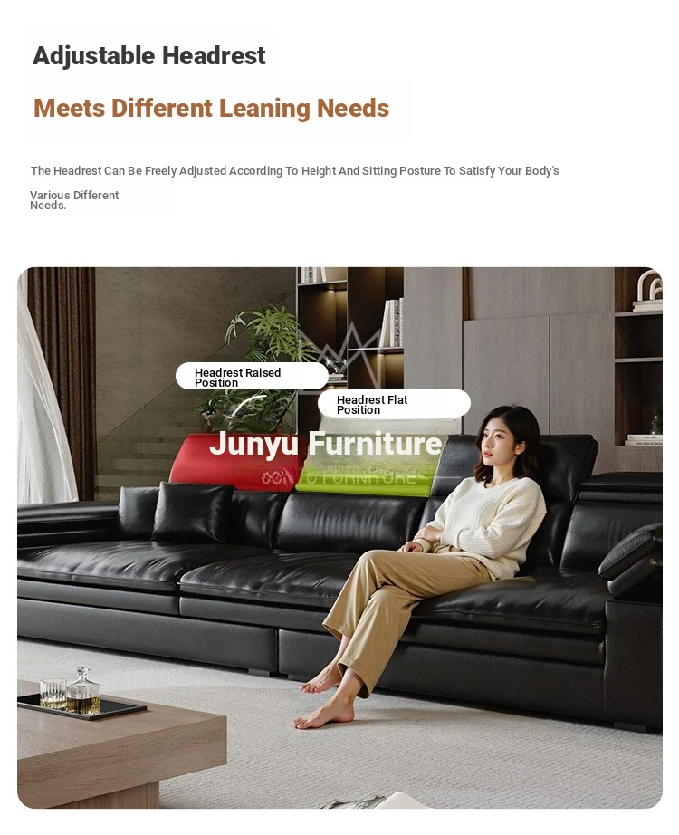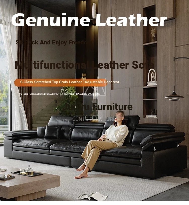 Italian Minimalist Multi-Functional Adjustable Headrest Genuine Leather Sofa with Adjustable Armrests - Perfect for Stylish Living Rooms!
