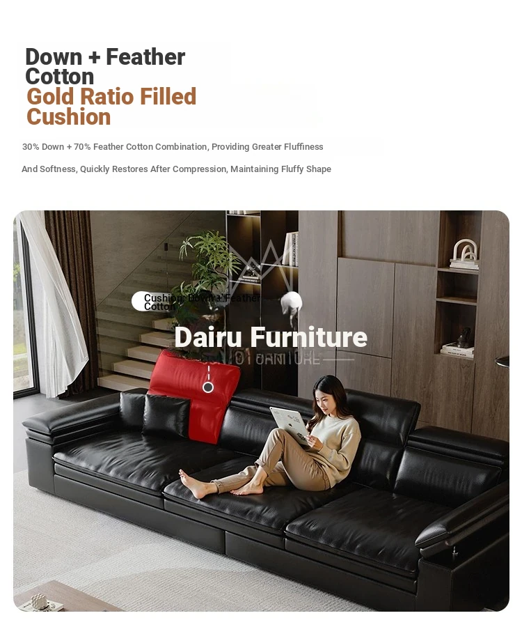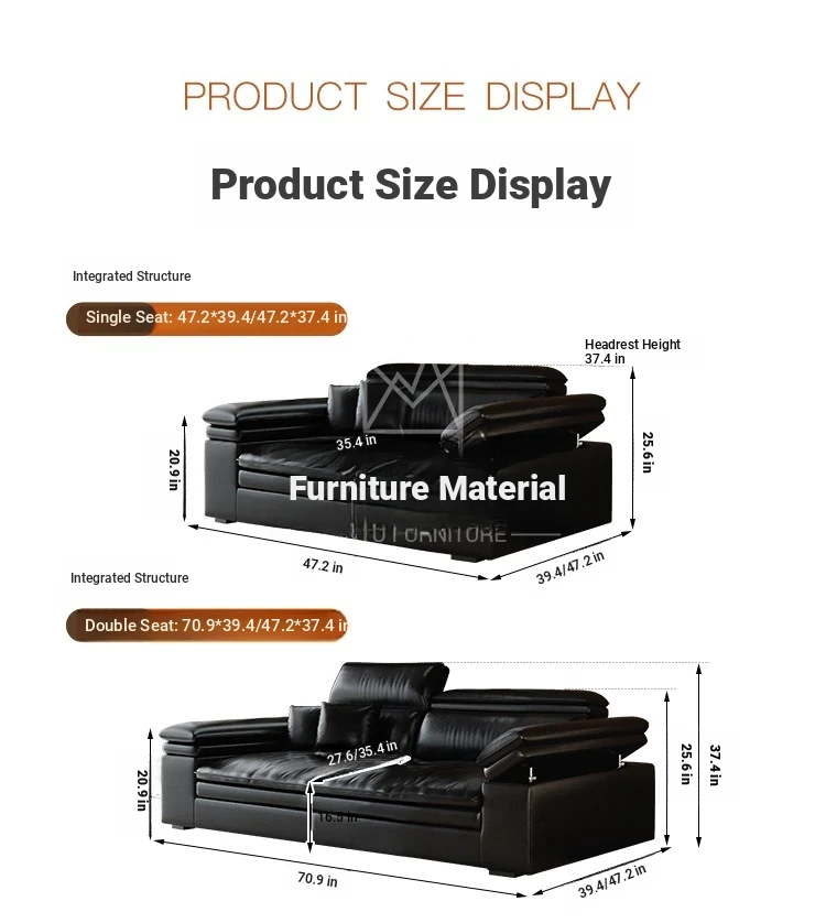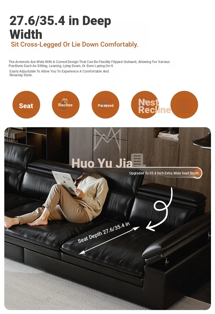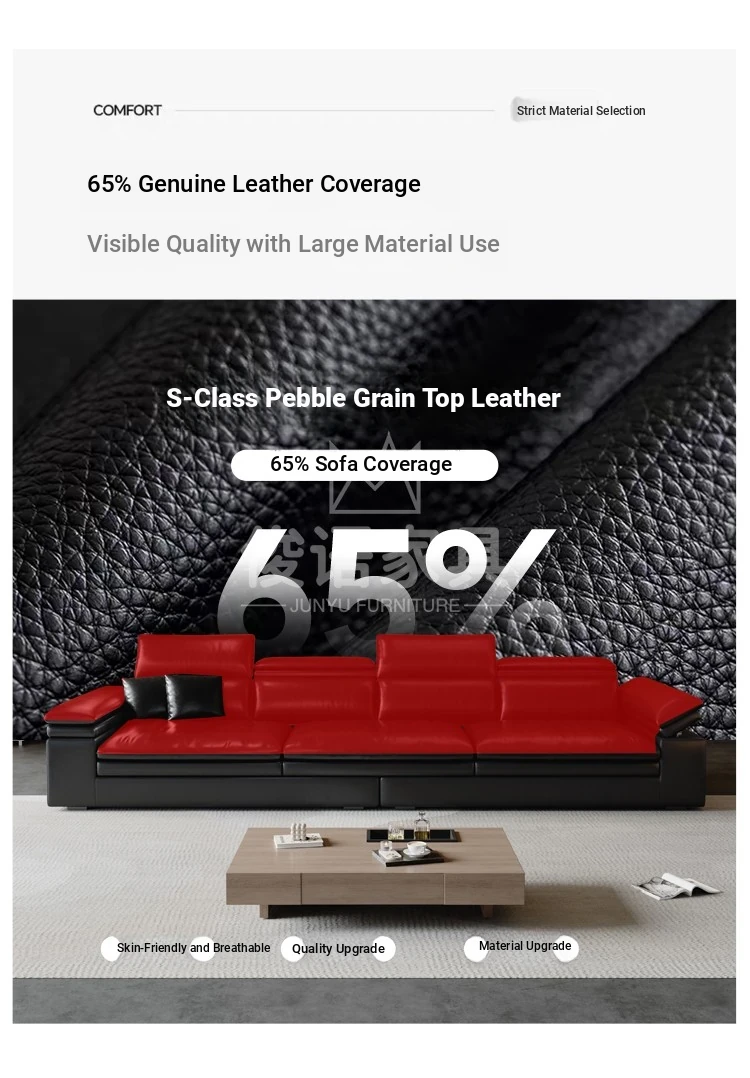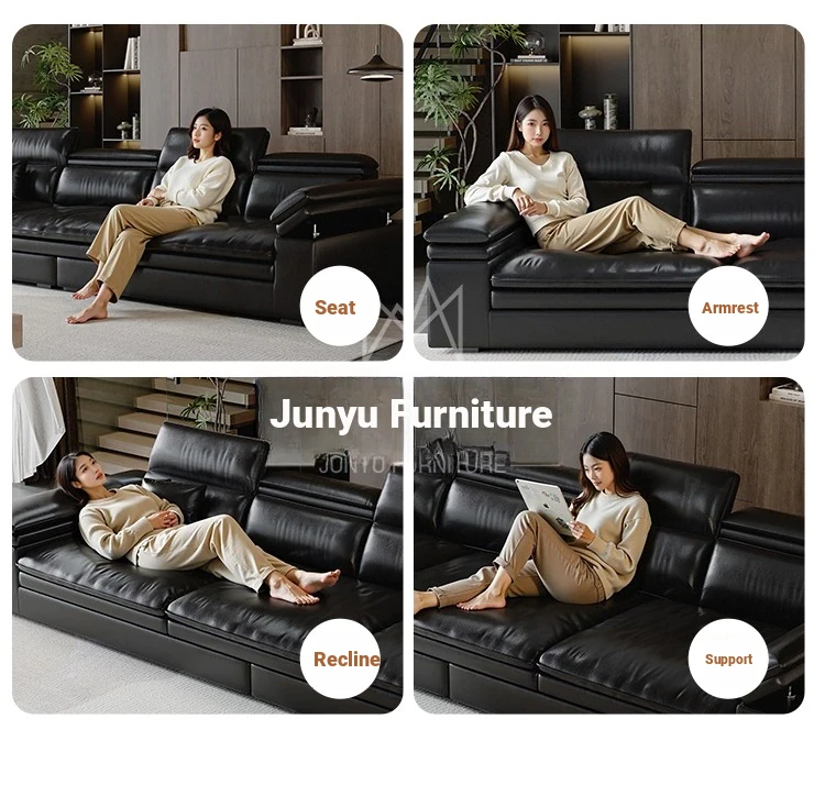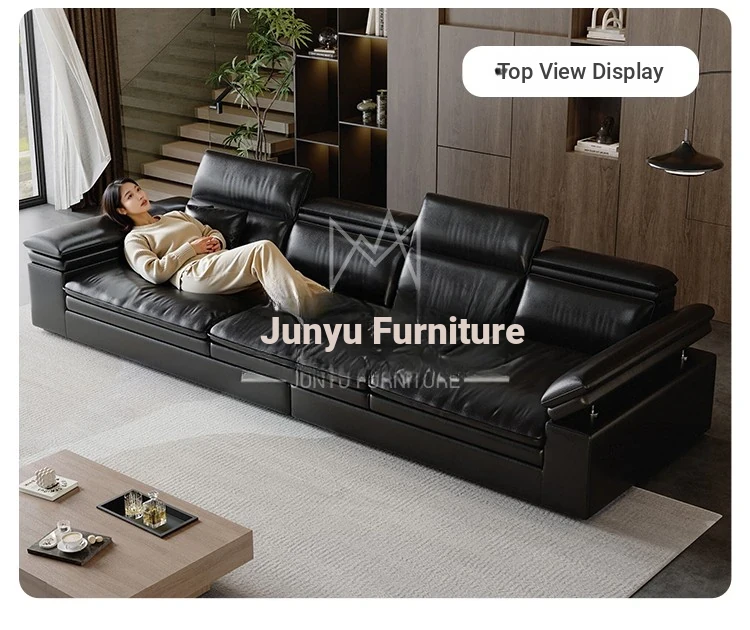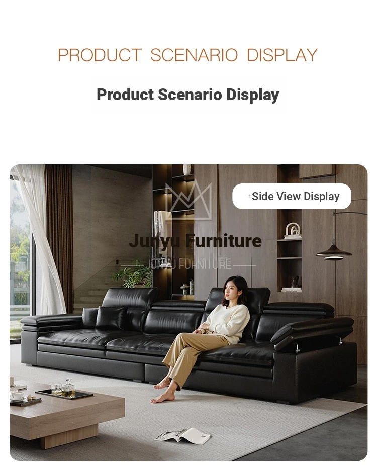 Italian Minimalist Multi-Functional Adjustable Headrest Genuine Leather Sofa with Adjustable Armrests - Perfect for Stylish Living Rooms!