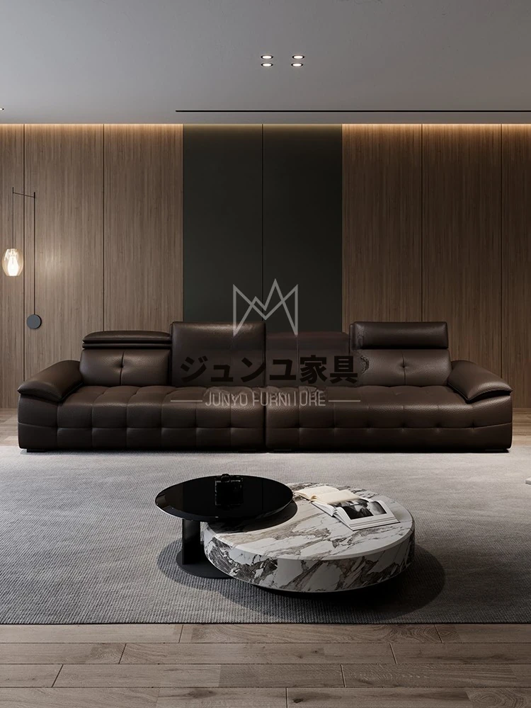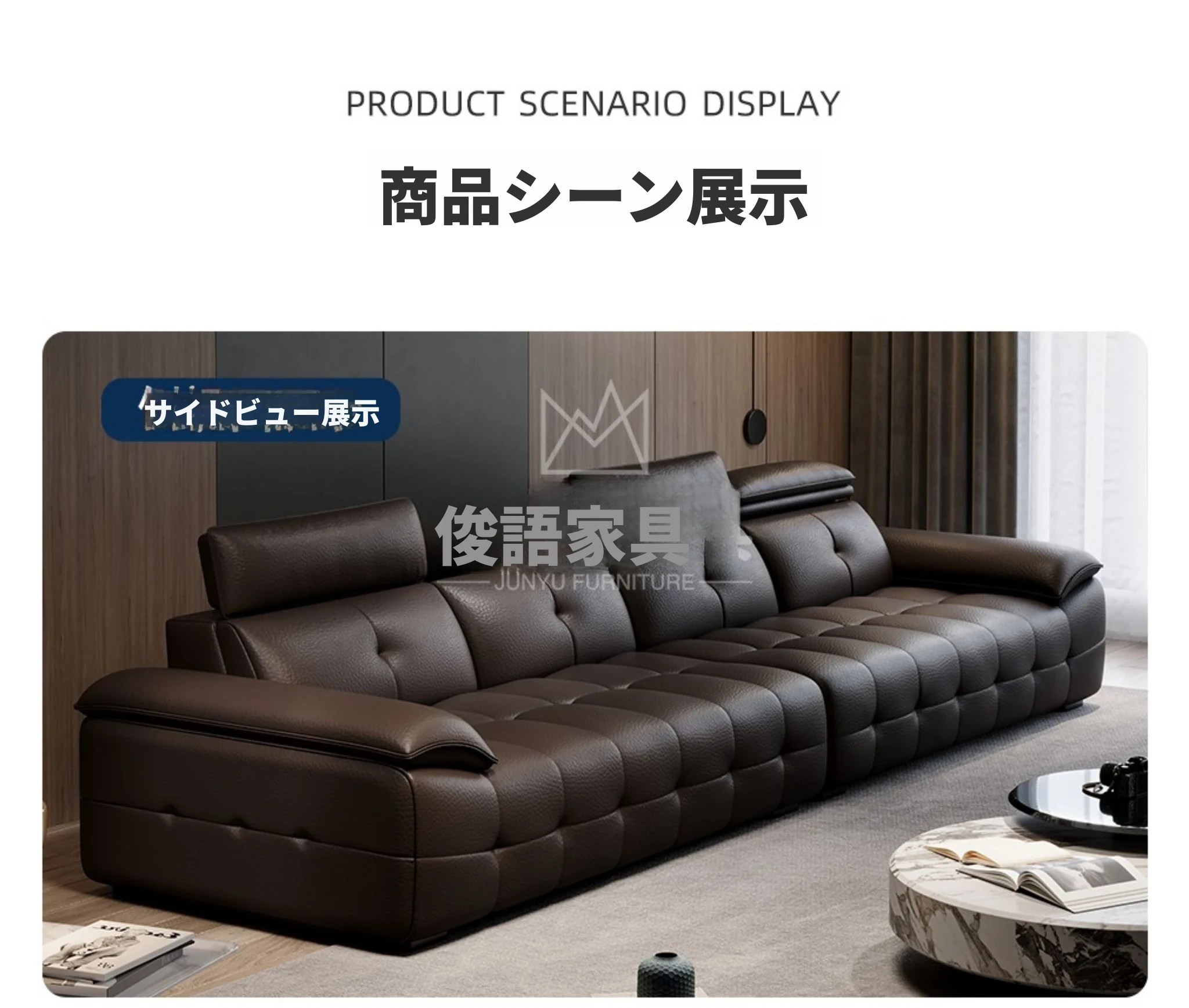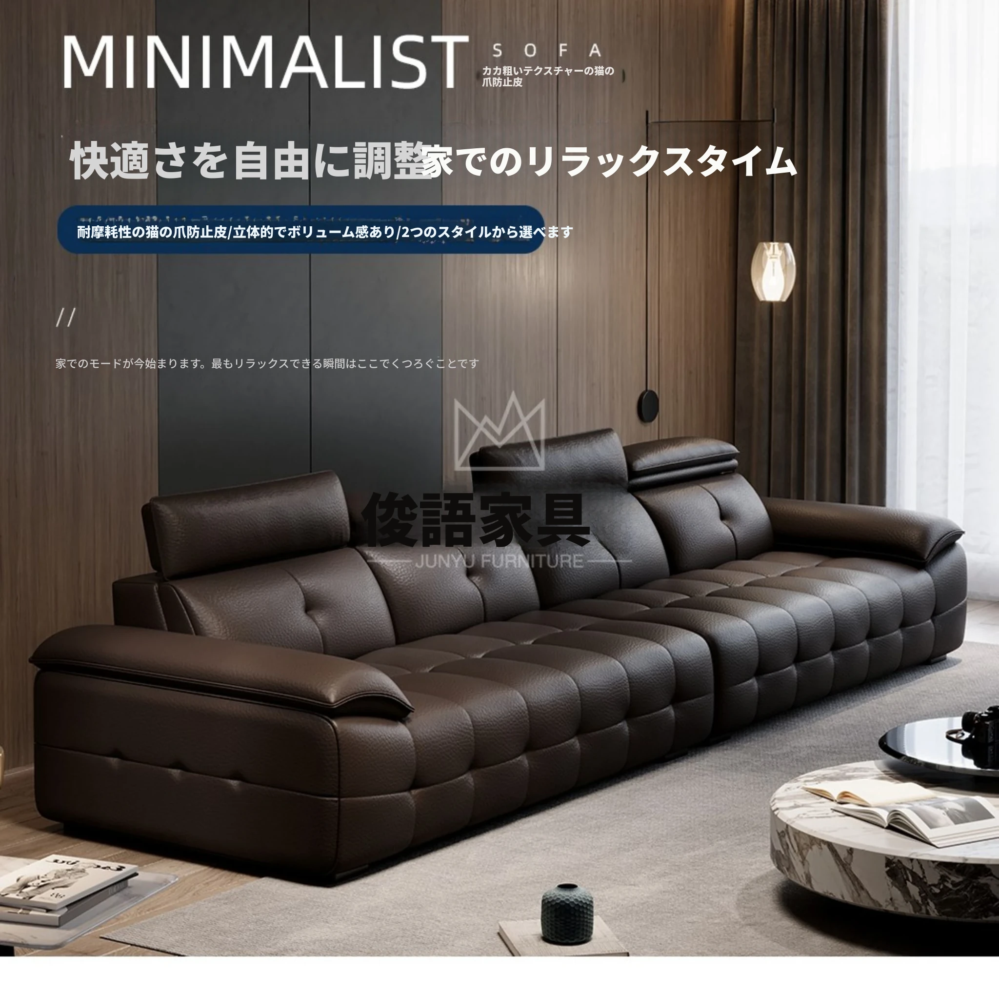 25年新作!イタリアンミニマリズムスタイル、ハイバックデザインのピアノキー調整可能ヘッドレスト付きソファ。機能性抜群のリビングルームソファで、快適なひとときをお楽しみください!