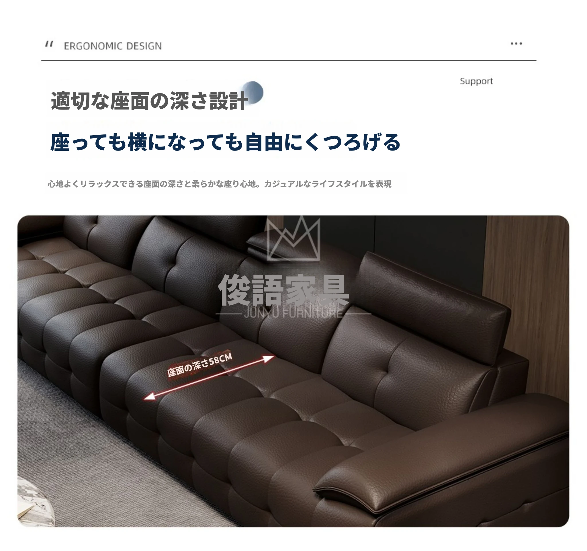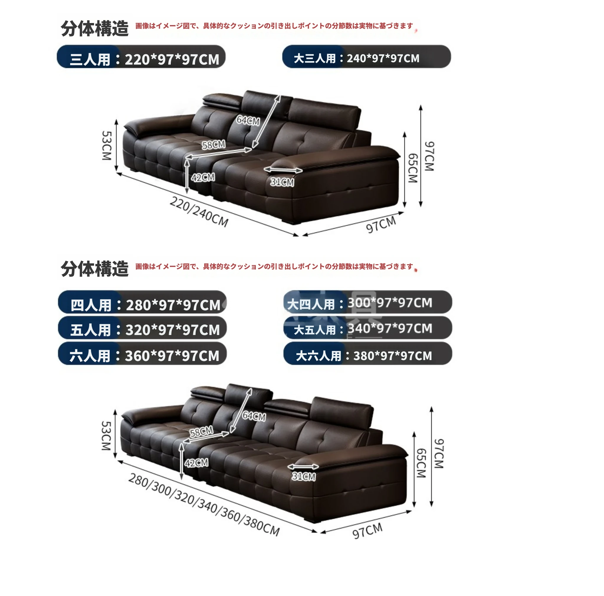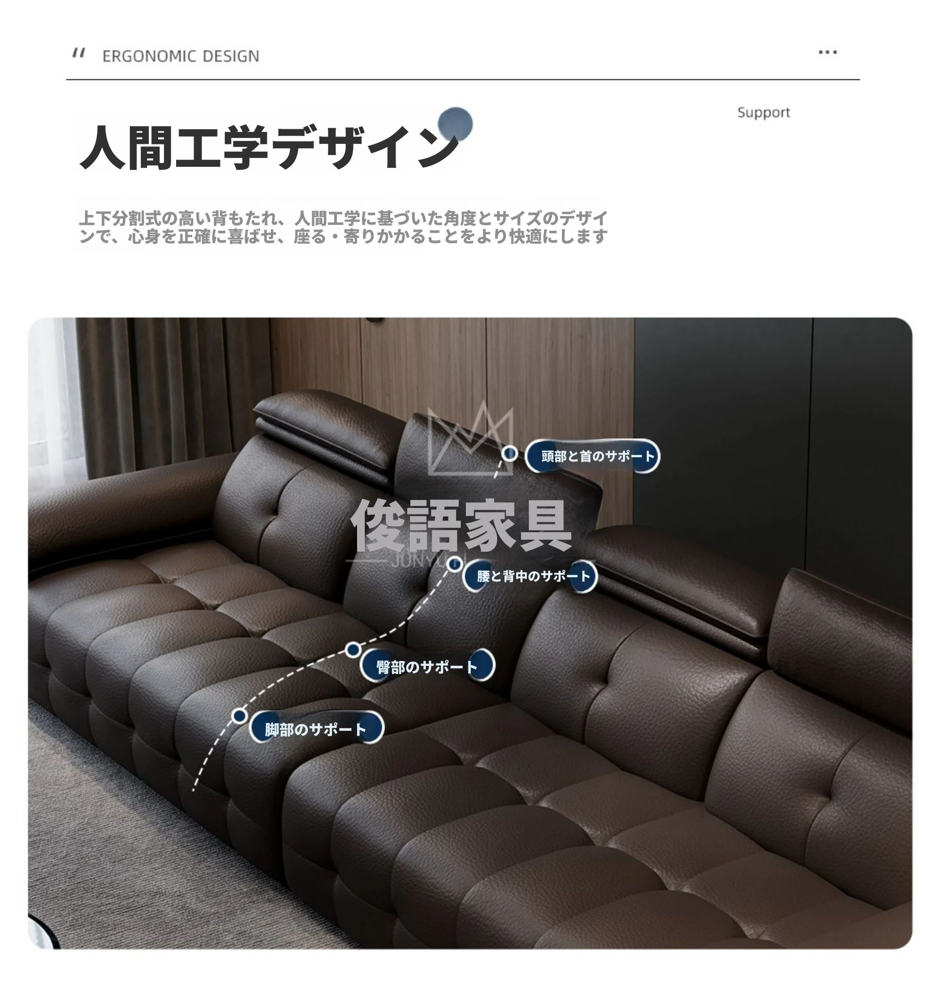 25年新作!イタリアンミニマリズムスタイル、ハイバックデザインのピアノキー調整可能ヘッドレスト付きソファ。機能性抜群のリビングルームソファで、快適なひとときをお楽しみください!