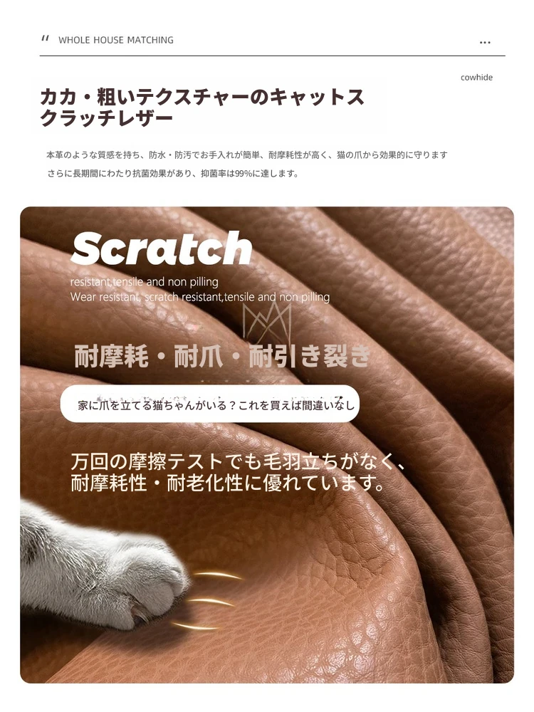 【粗いライチ模様のキャットスクラッチレザーの色はさらに選択可能】