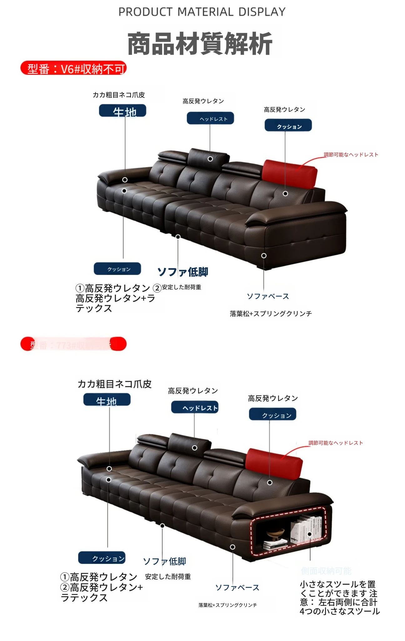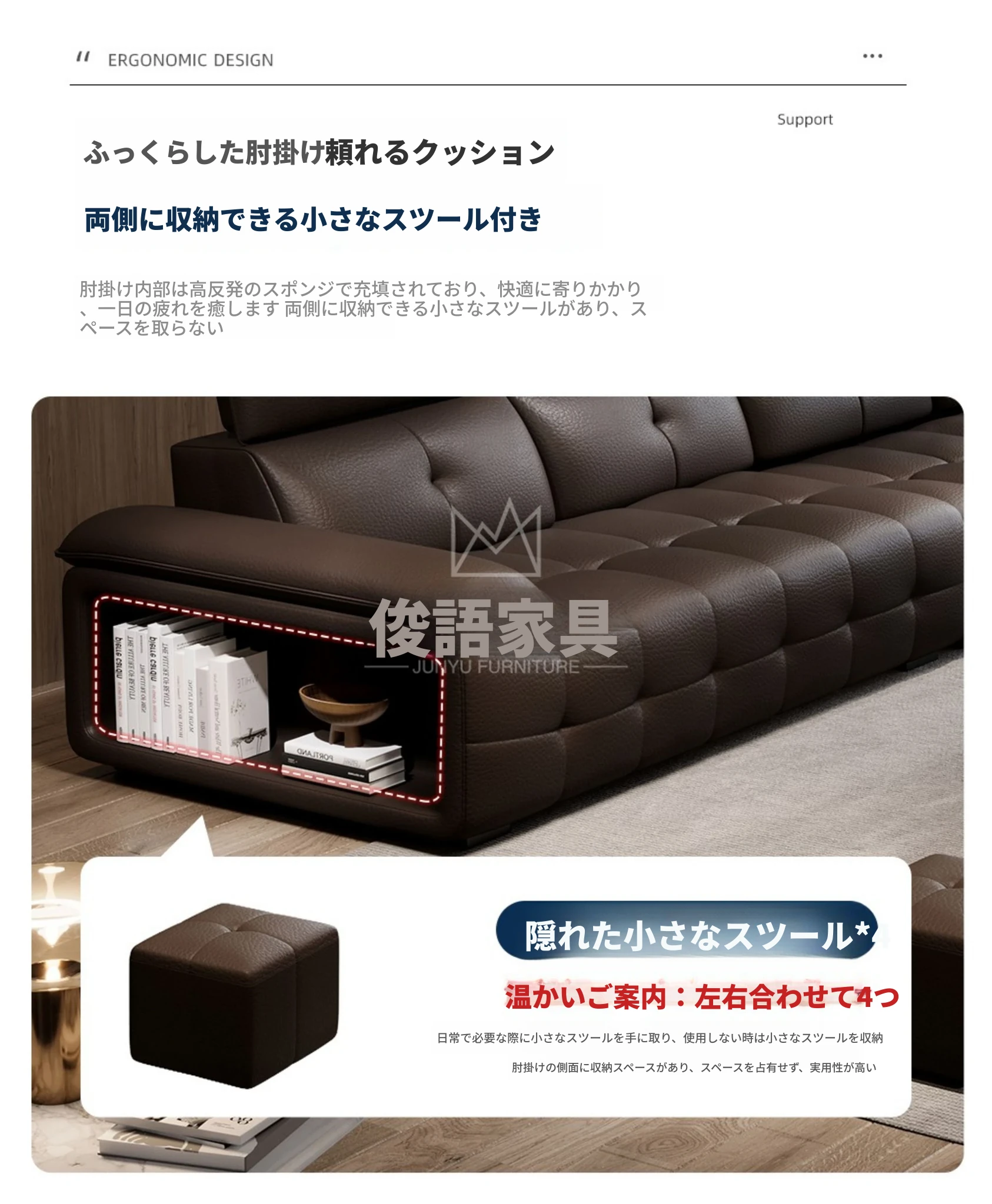 【以下の仕様は収納タイプの両側アームレストに収納可能で、4つの小さなスツールが付いています】