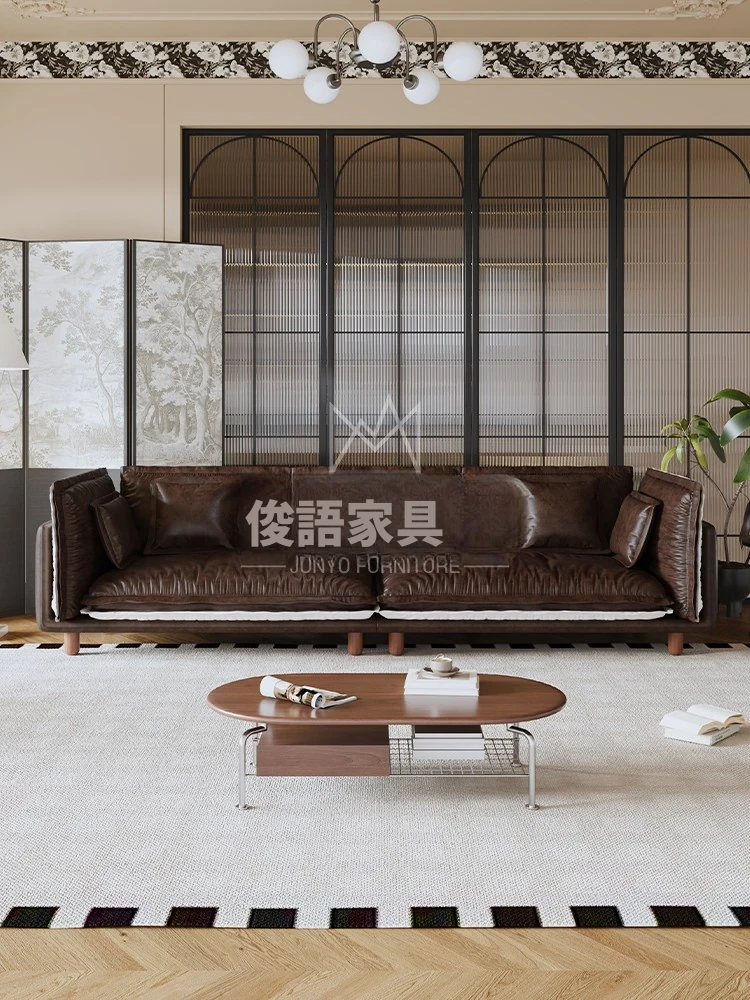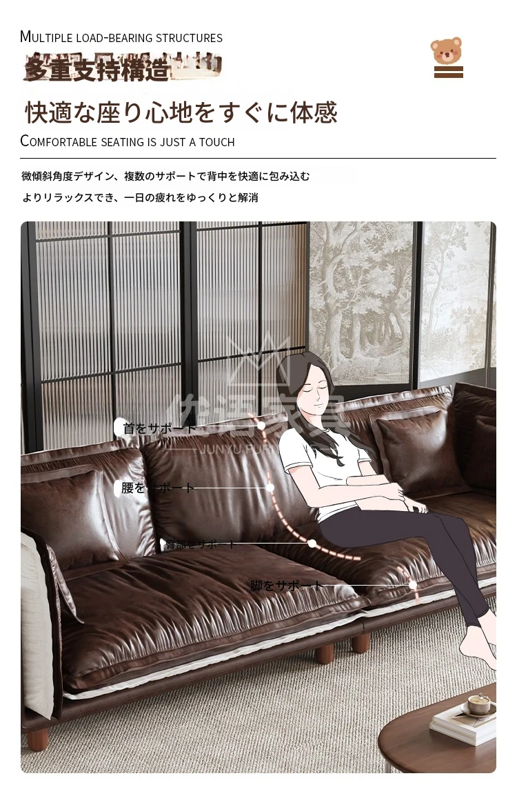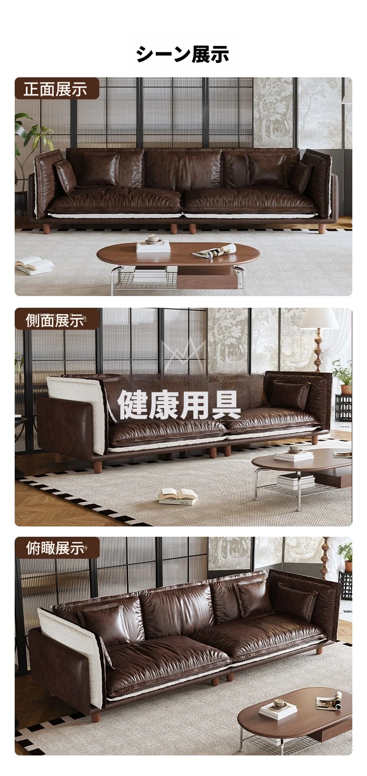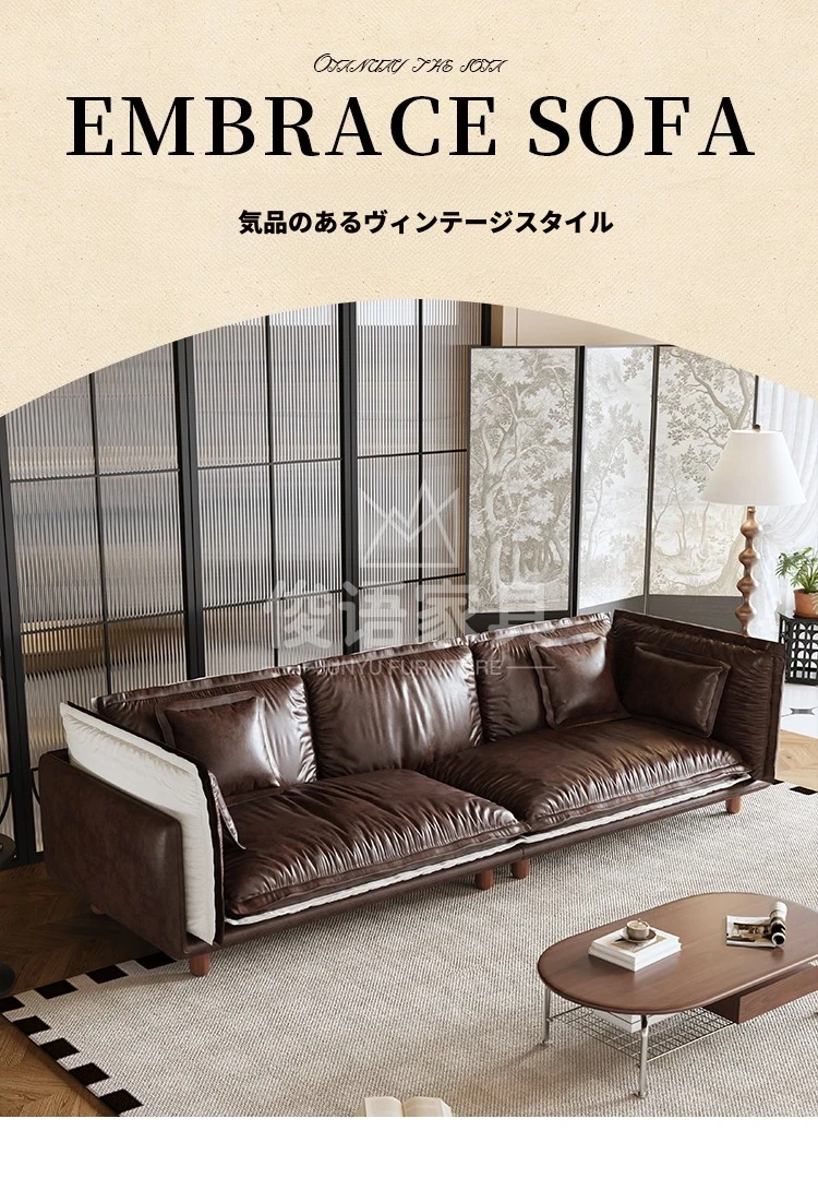 フレンチヴィンテージオイルレザー抱きしめソファ|リビングにぴったりな小型・中古風の深い直線デザイン|25新作登場!エレガントな雰囲気でお部屋を彩ります。