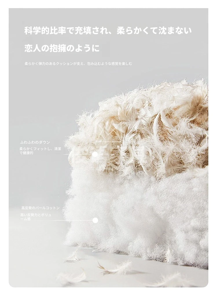 フラッグシップ版·ゼロ圧無重力座感「抗菌抗ダニのシェニール+選りすぐりのふわふわ白鵞毛羽毛+高品質な羽毛シルク+高密度リバウンドスポンジ」
