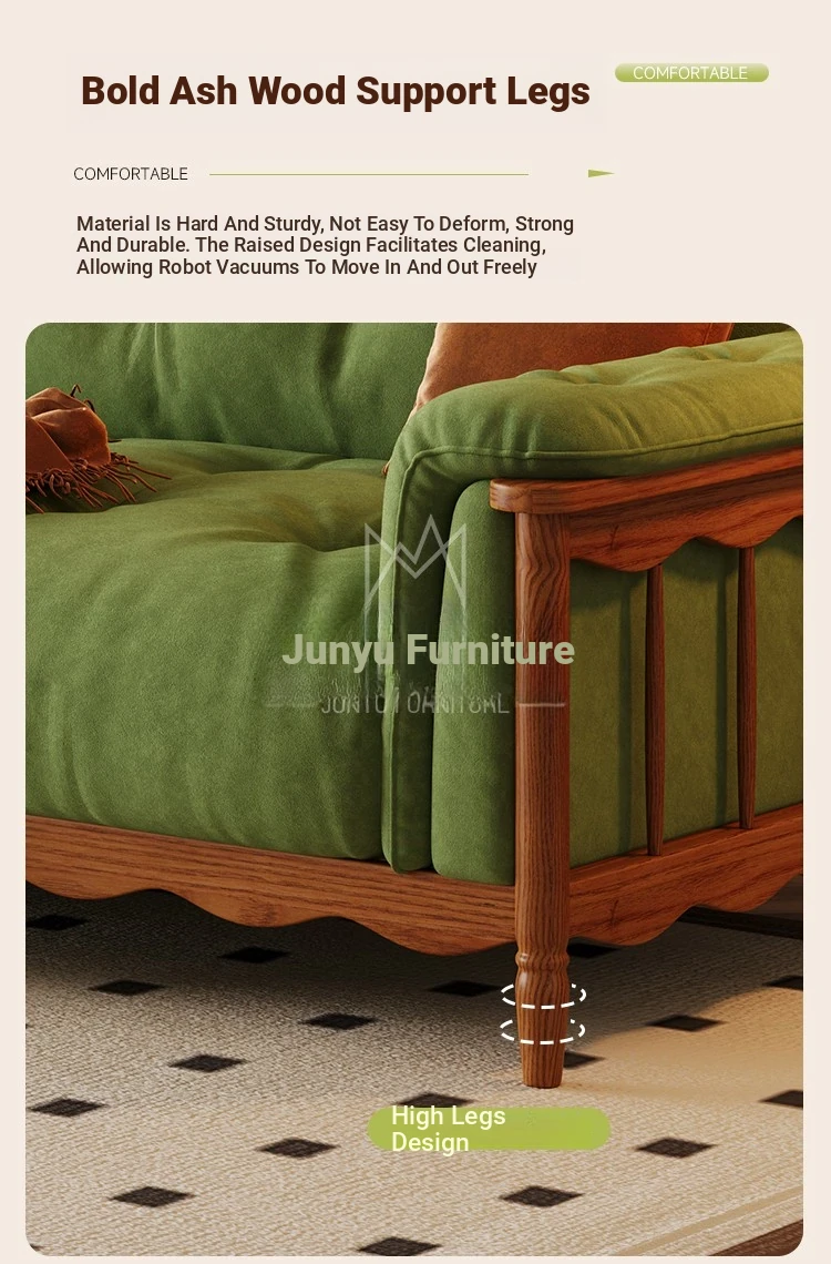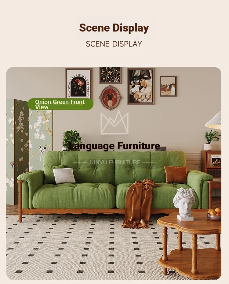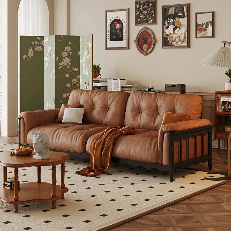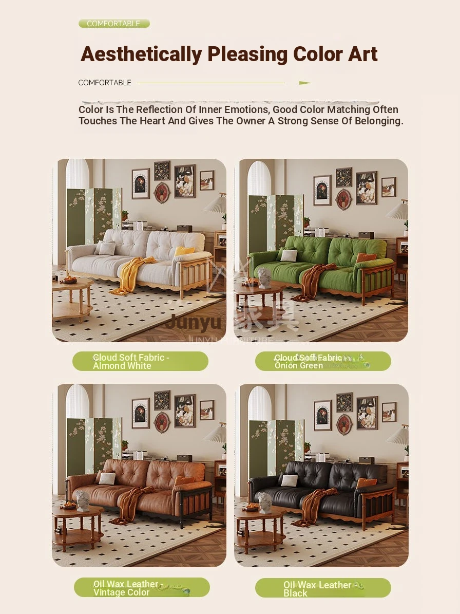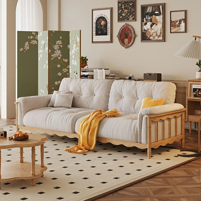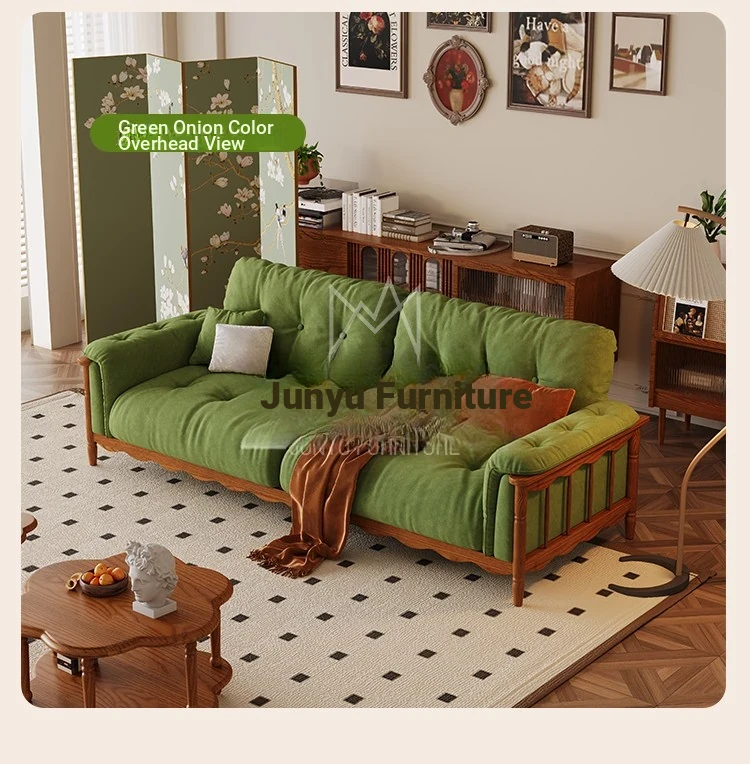 French Vintage Solid Wood Cloud Velvet Sofa for Small Living Rooms - Stylish and Cozy Oil Wax Leather Design, Perfect for Compact Spaces!