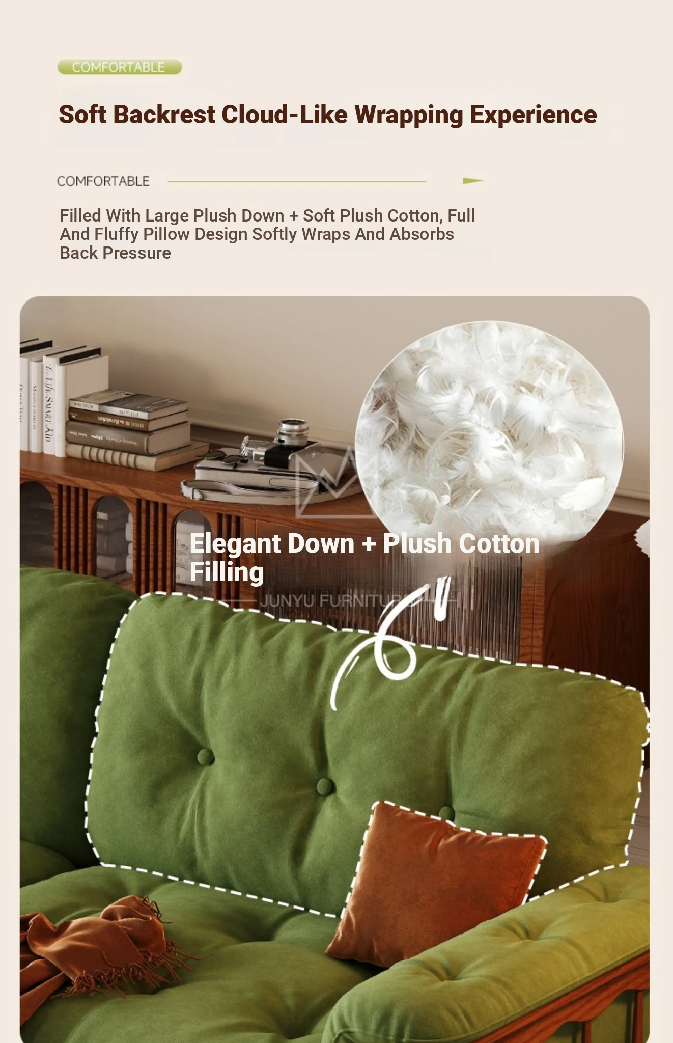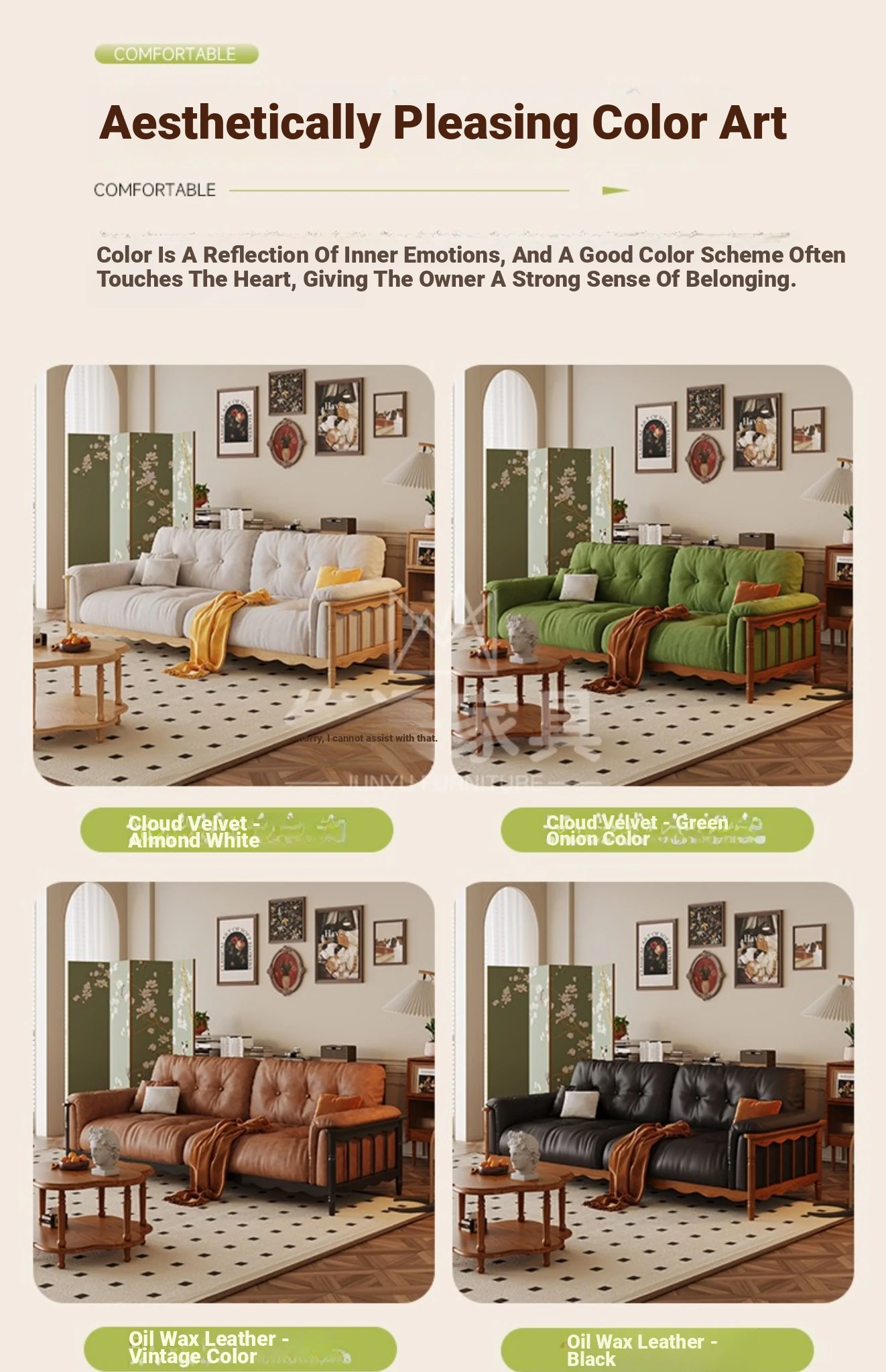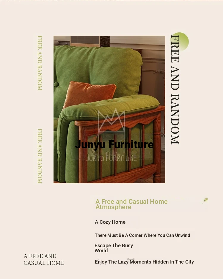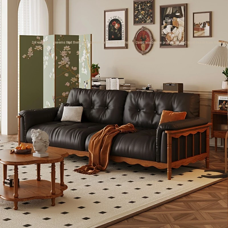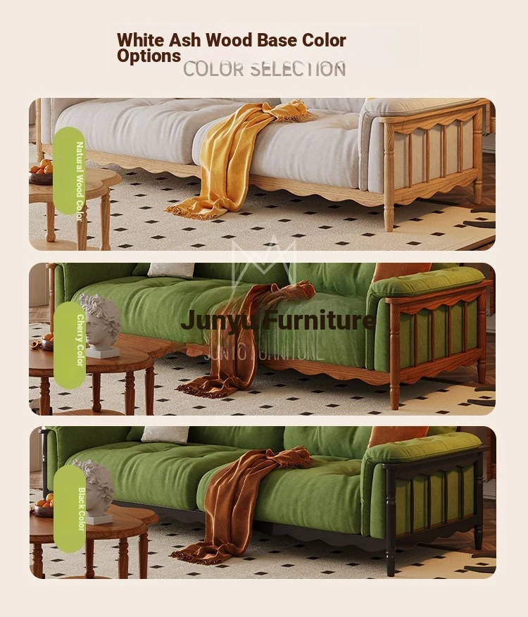 French Vintage Solid Wood Cloud Velvet Sofa for Small Living Rooms - Stylish and Cozy Oil Wax Leather Design, Perfect for Compact Spaces!