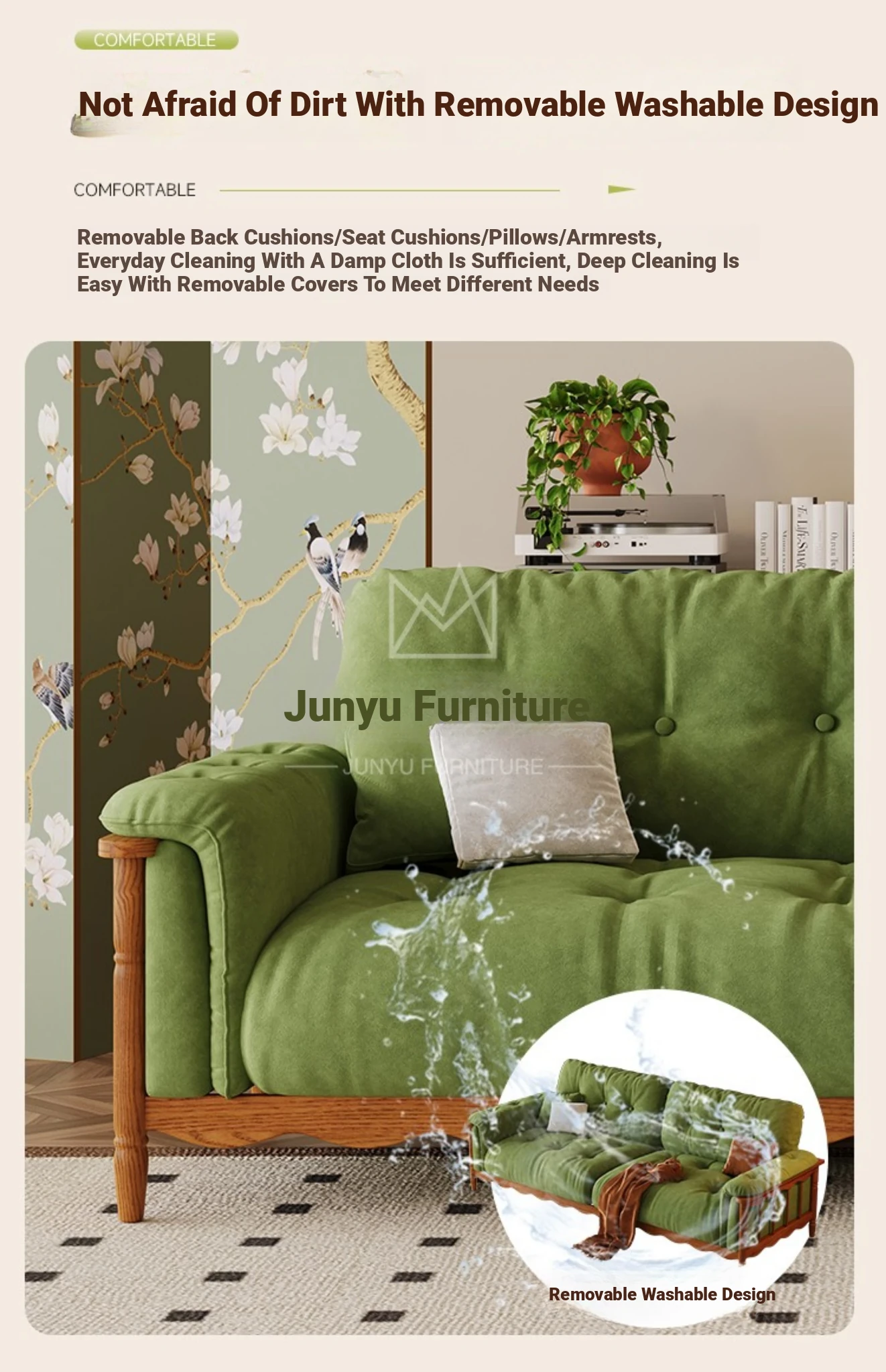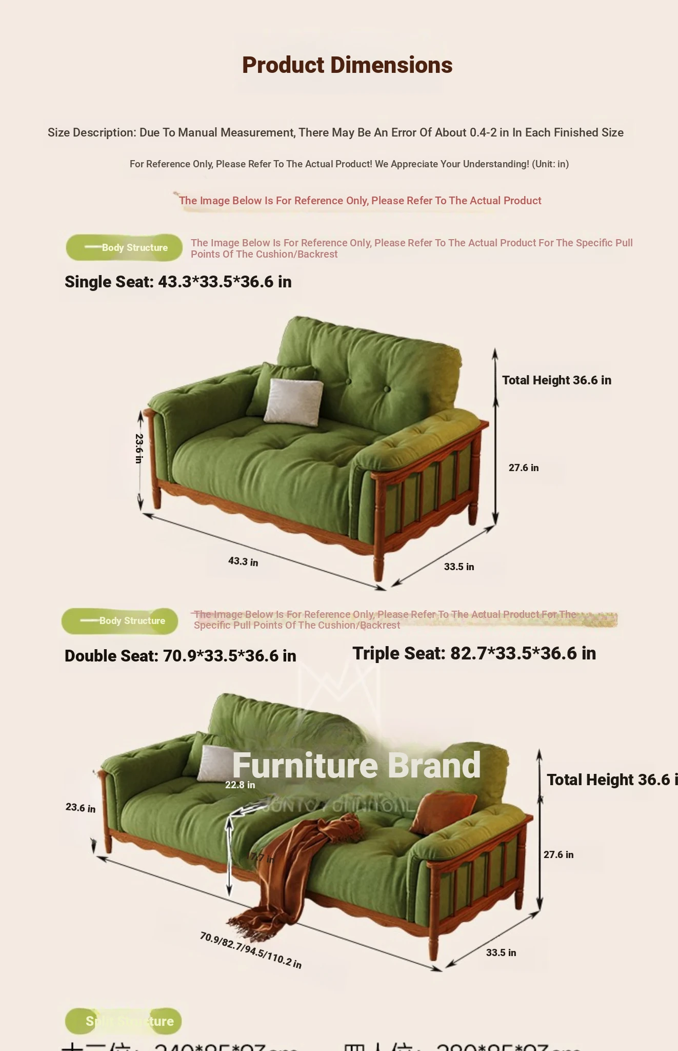 Three people 82.68 ins [high density rebound sponge cushion + bold larch base]]
