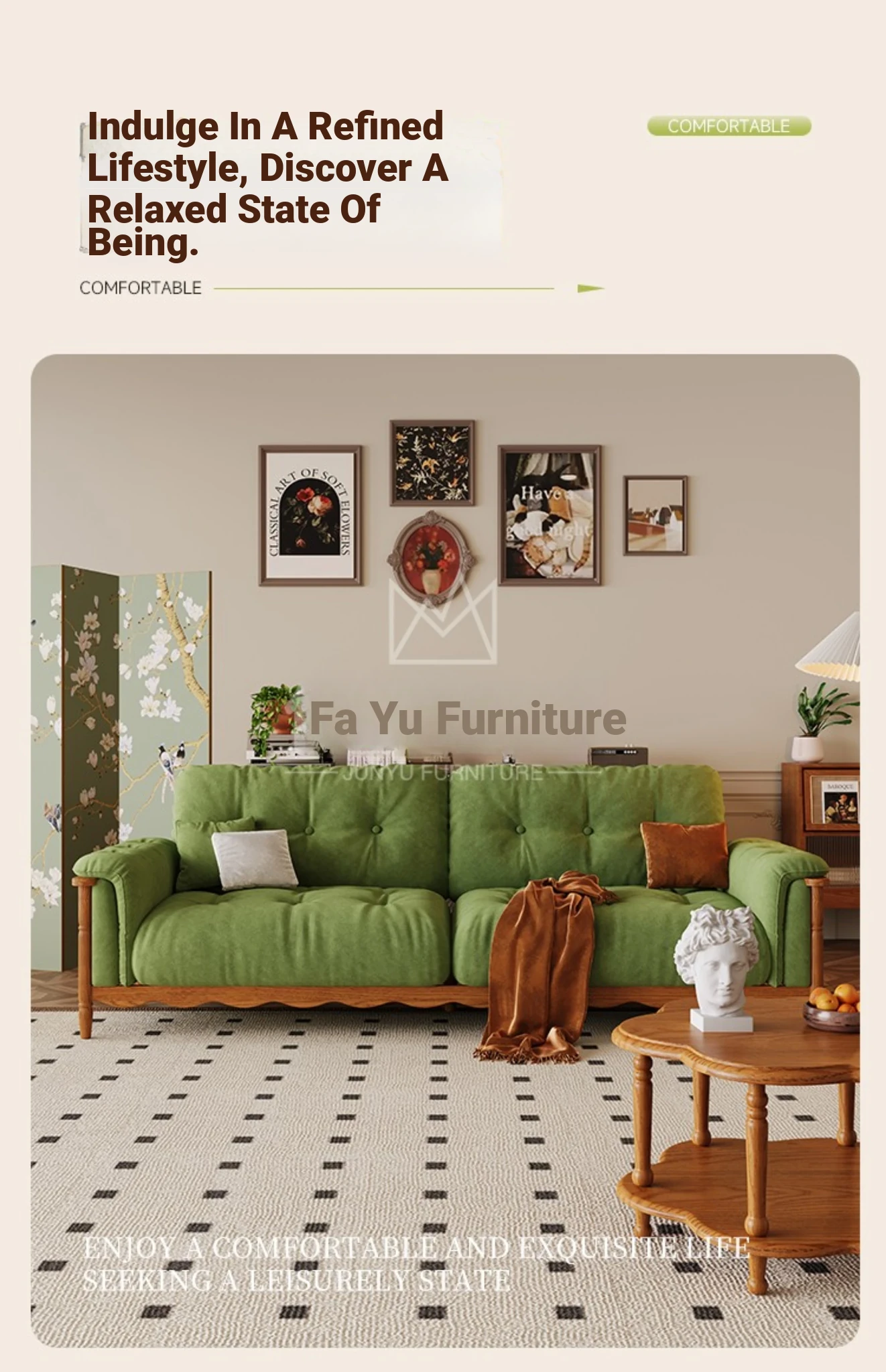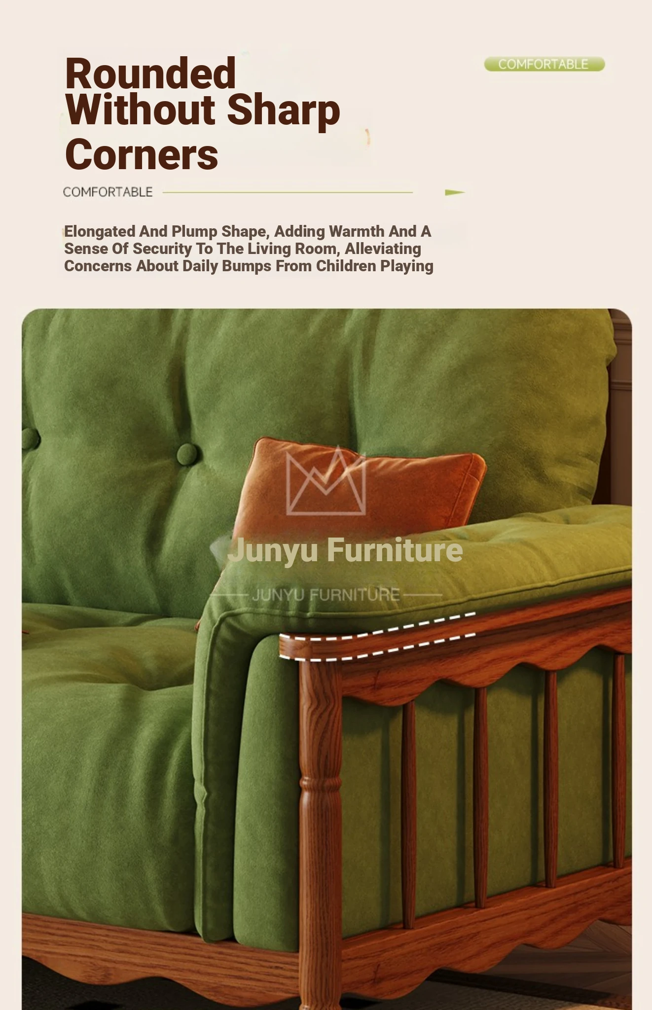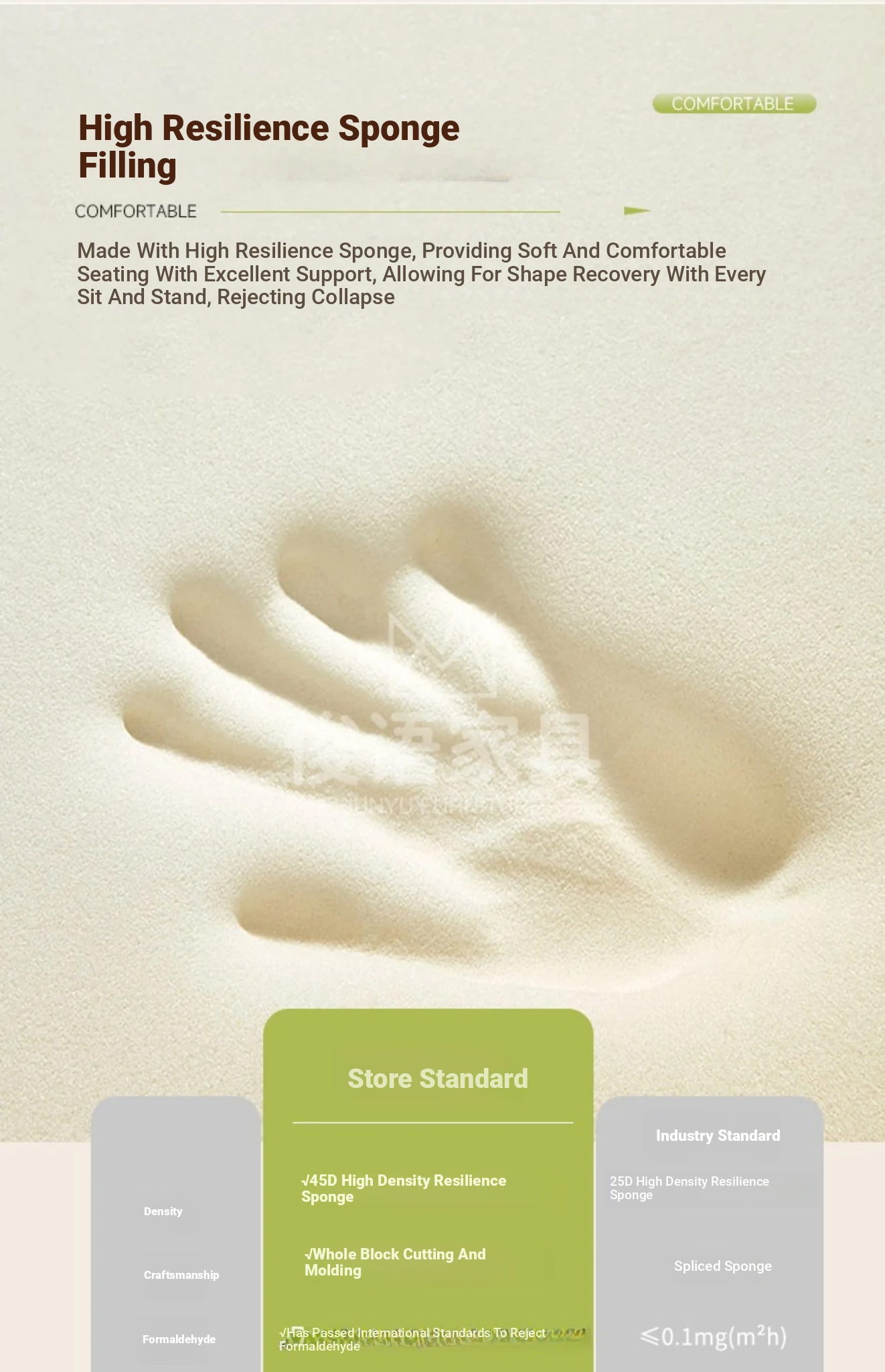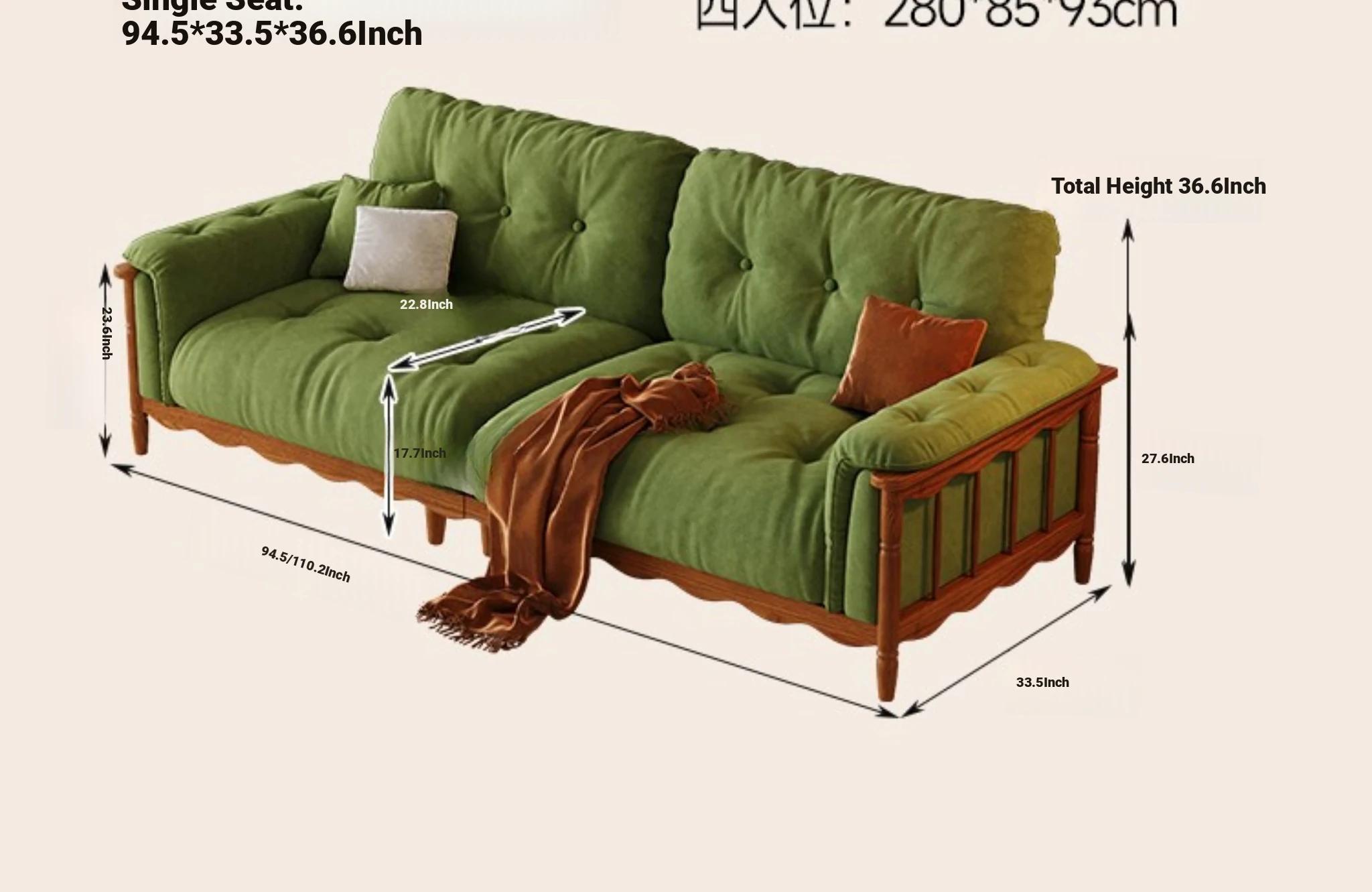 Four-person 94.49 in [High Density Rebound Sponge Cushion + Bold Larch Base]]