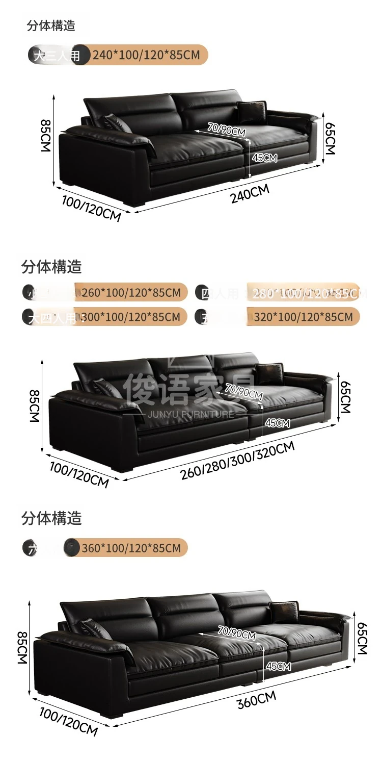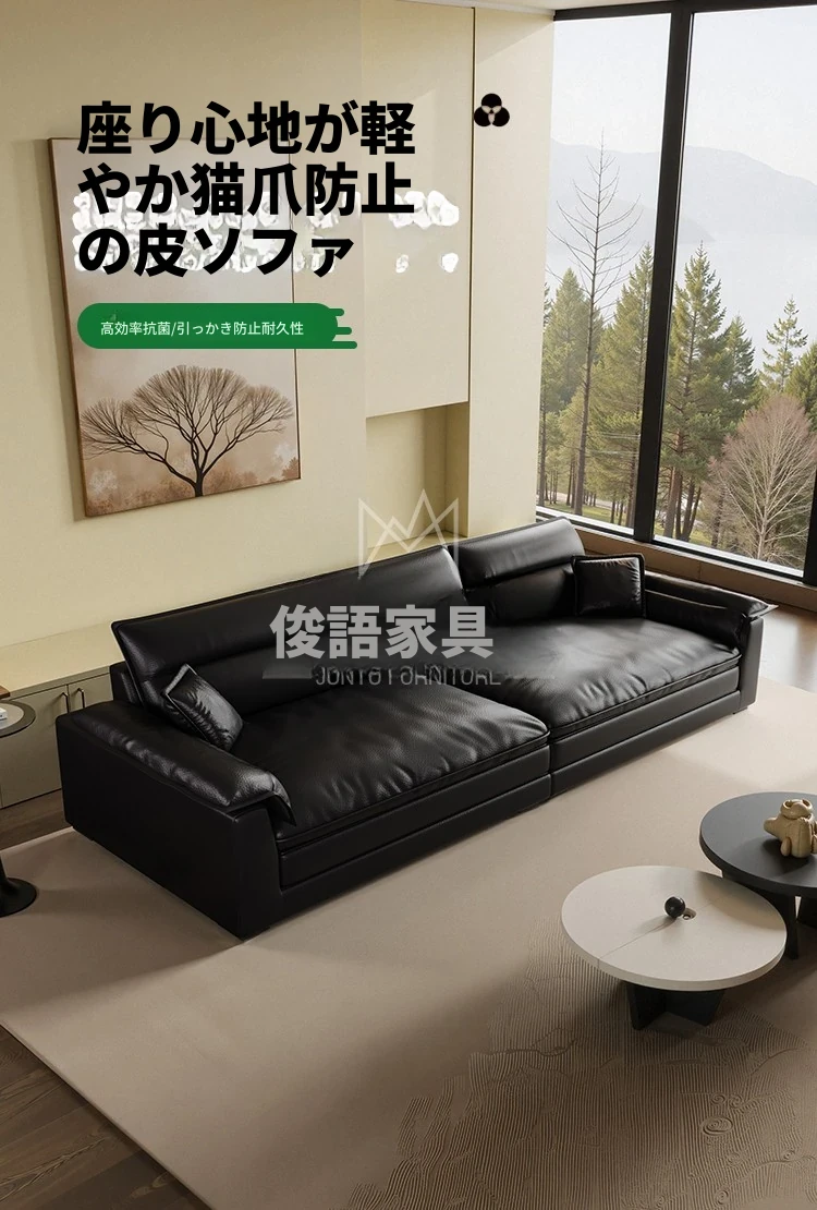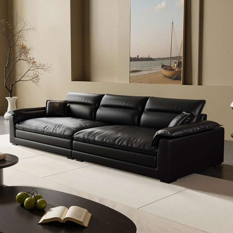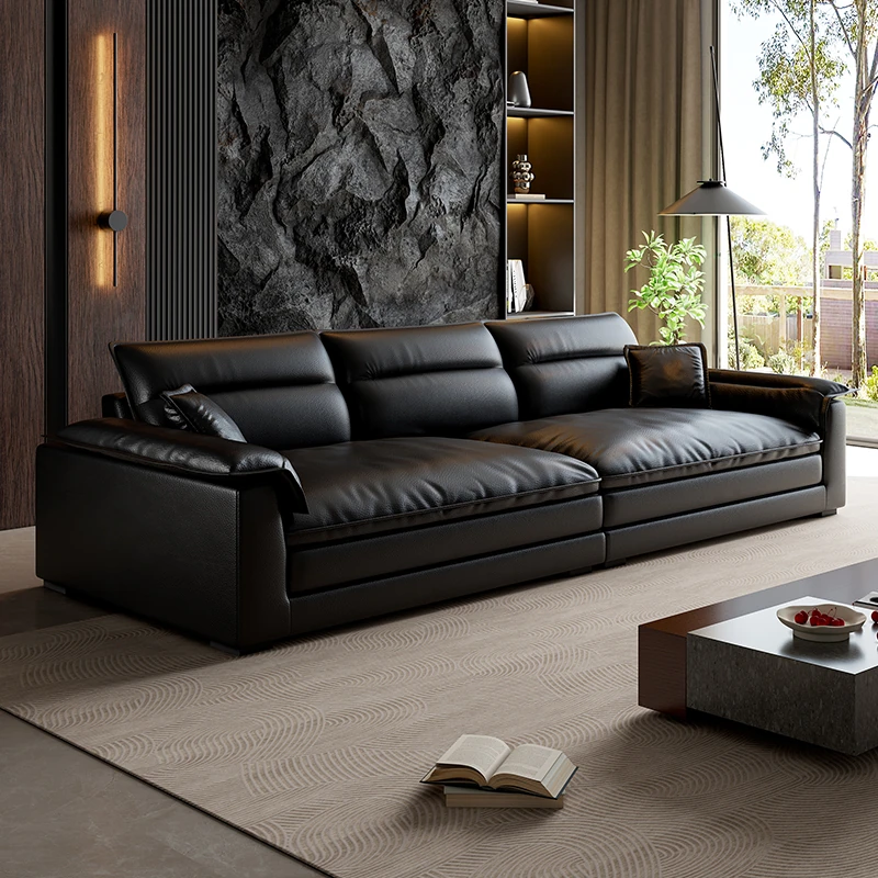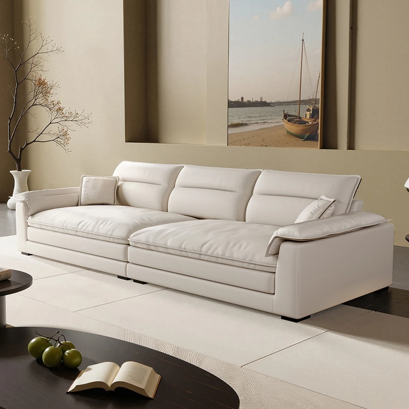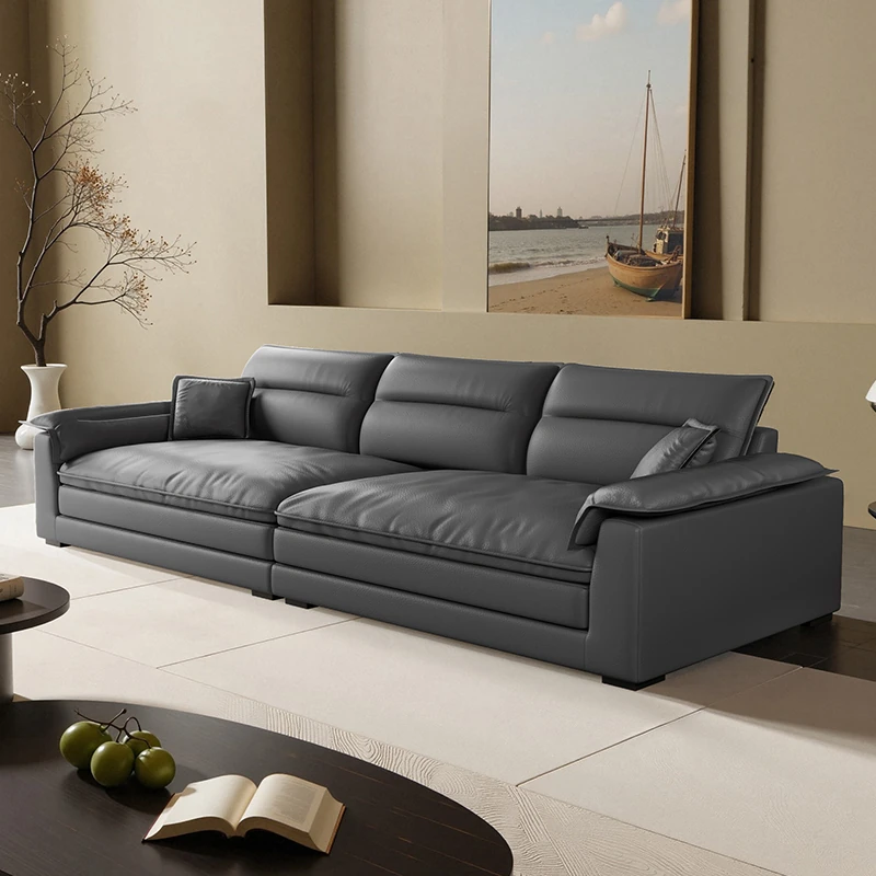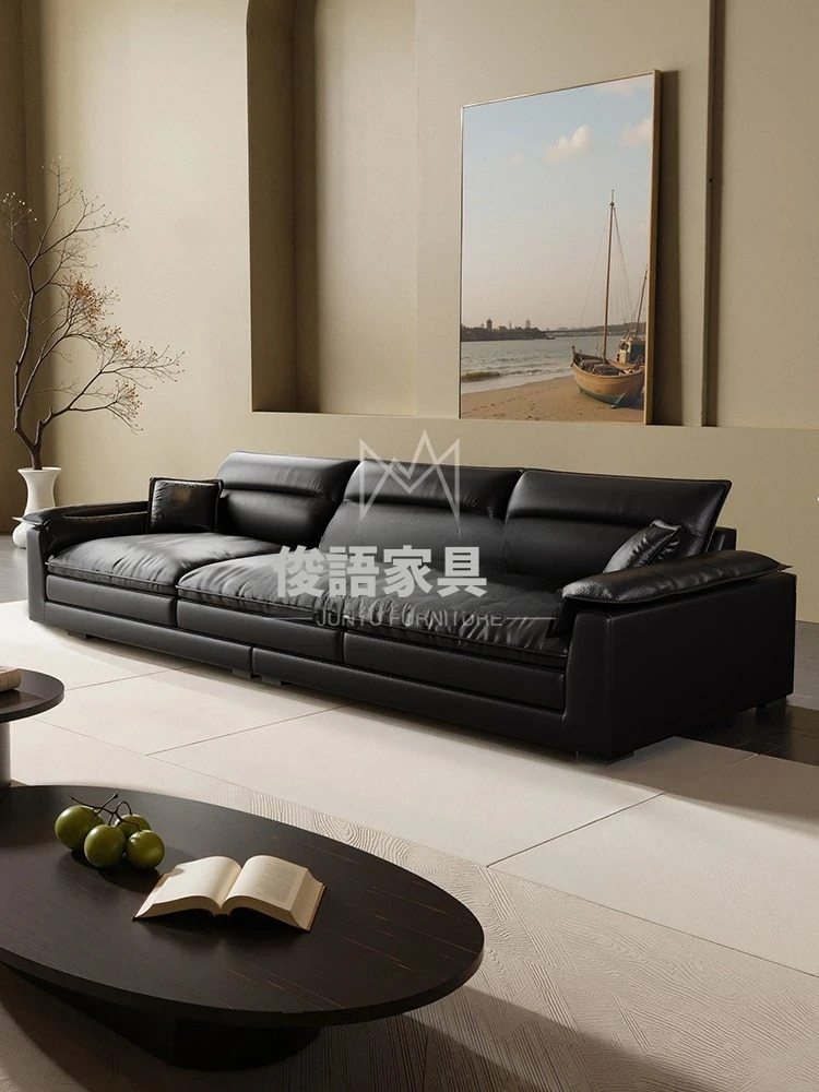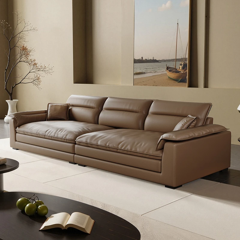 イタリアンミニマルキャットグラブ皮製セーリングソファー - モダンでシンプル、贅沢感あふれる深いダウン入りレザーソファ、リビングルームに最適!