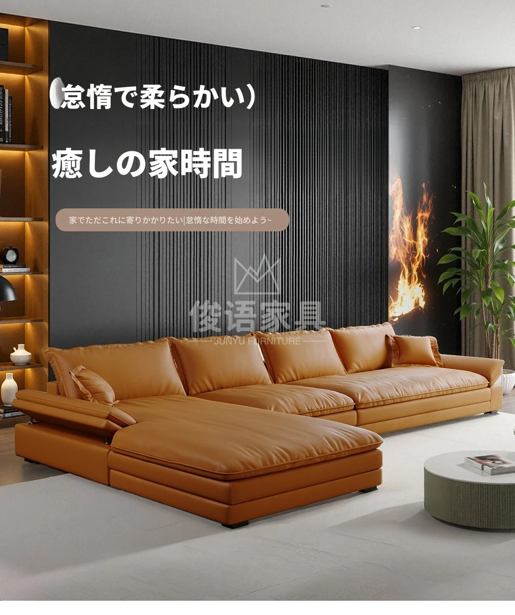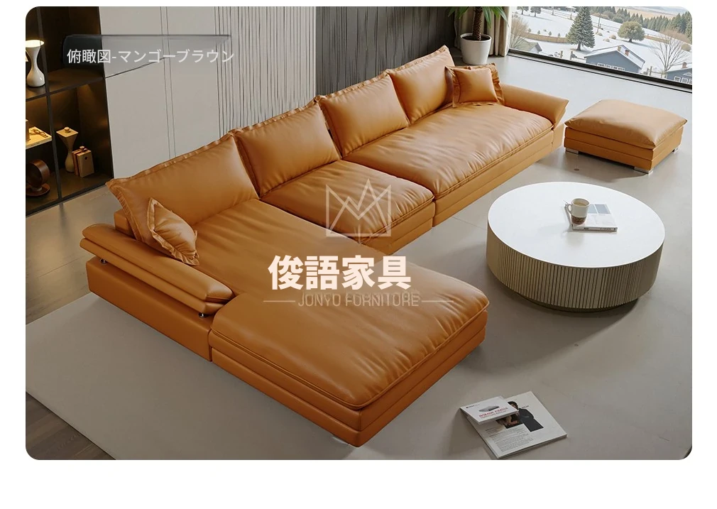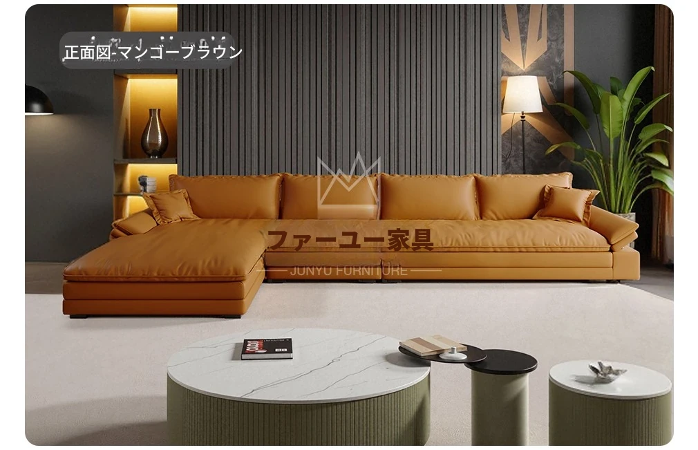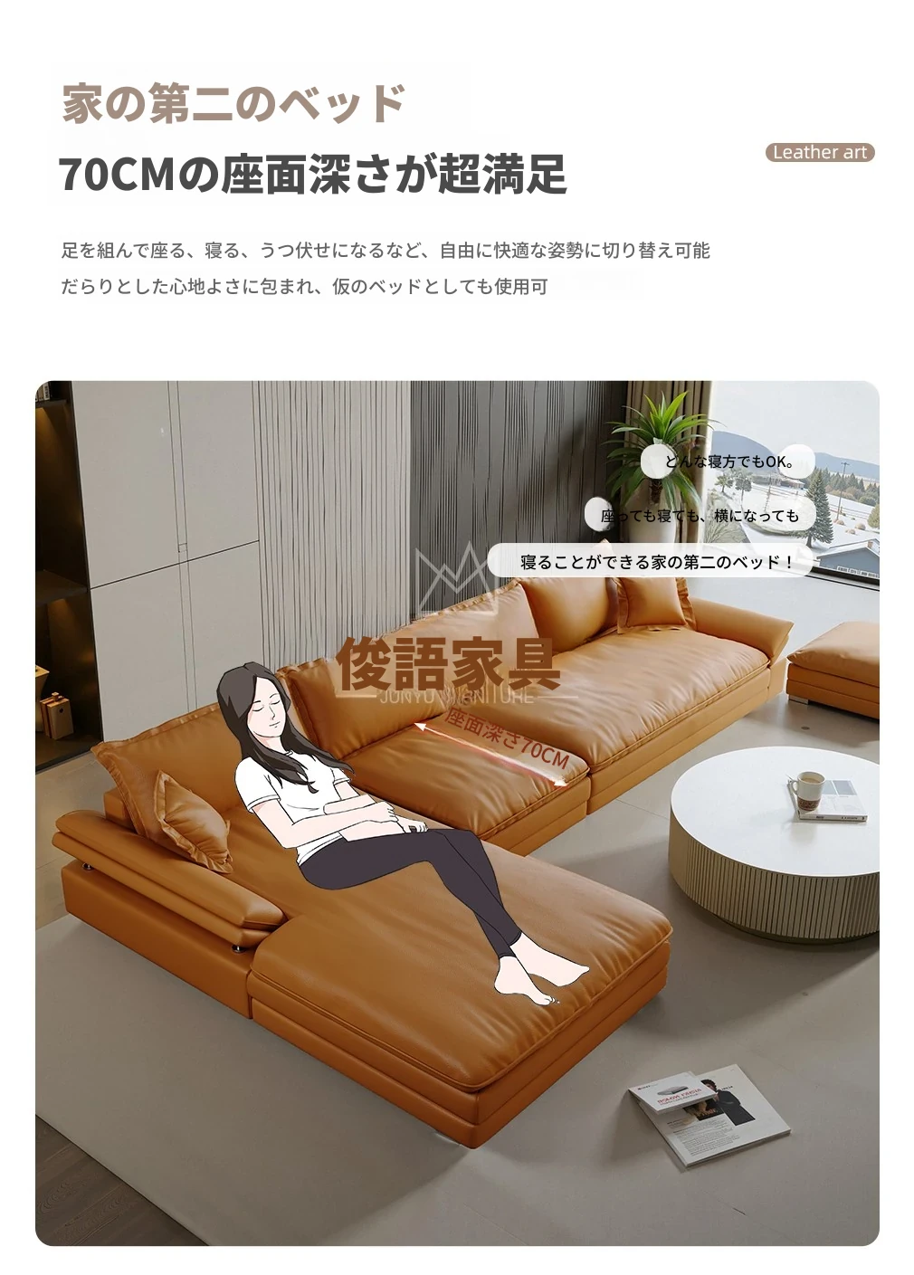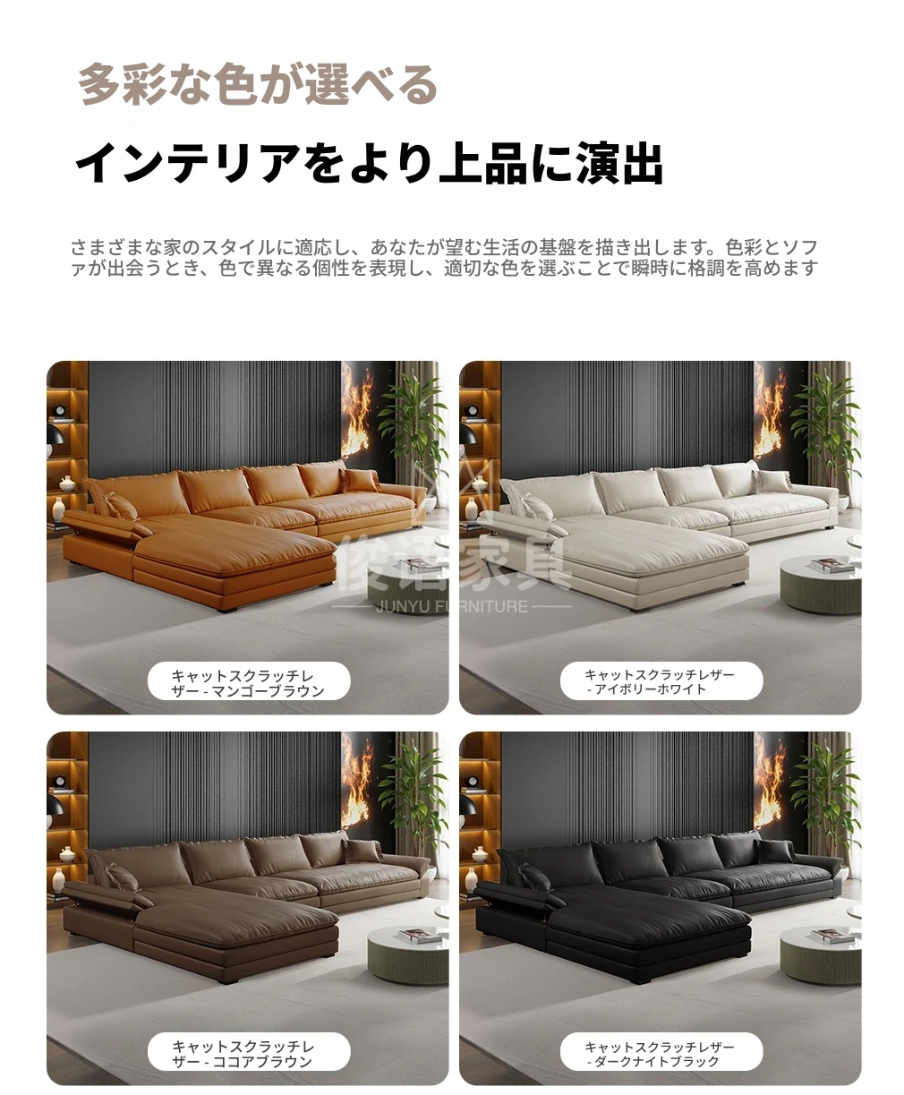 イタリアンミニマリズムのキャットクライミングレザー帆船型フェイスタイプソファ【2025新作】、広々としたL字型、リビングにぴったりな深座りデザインで、快適さとスタイルを両立!あなたの空間を格上げする一品。