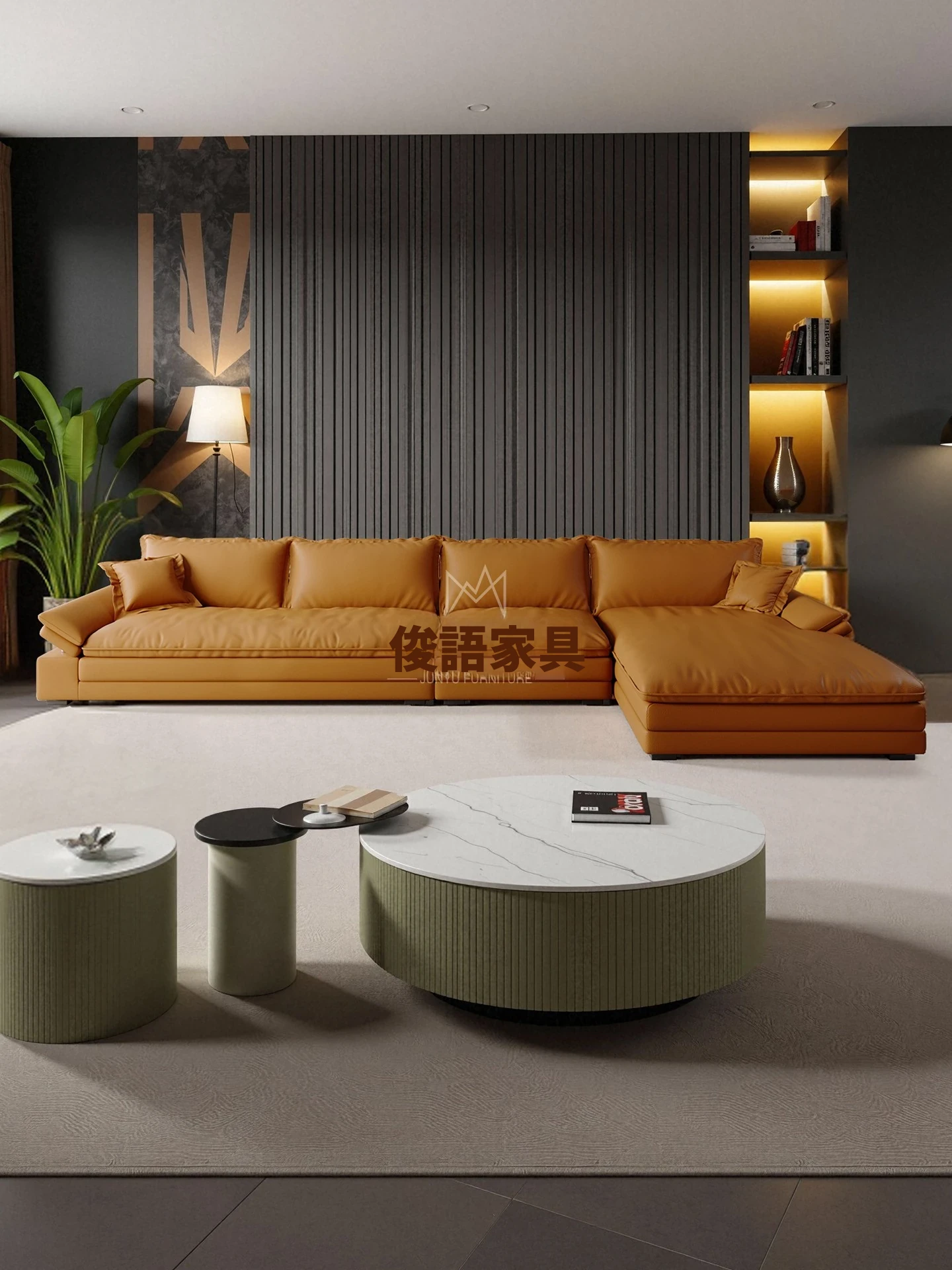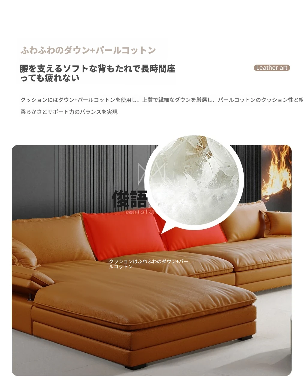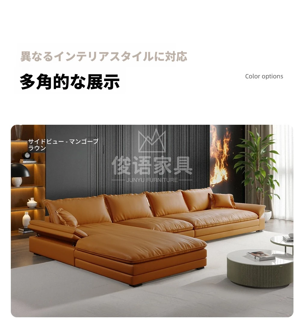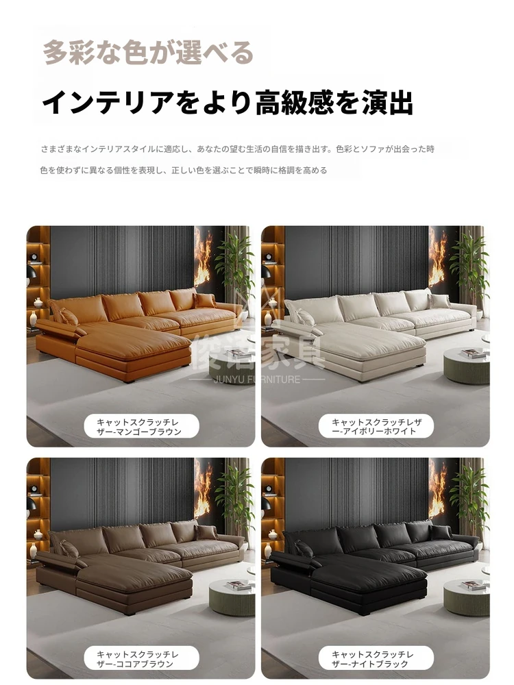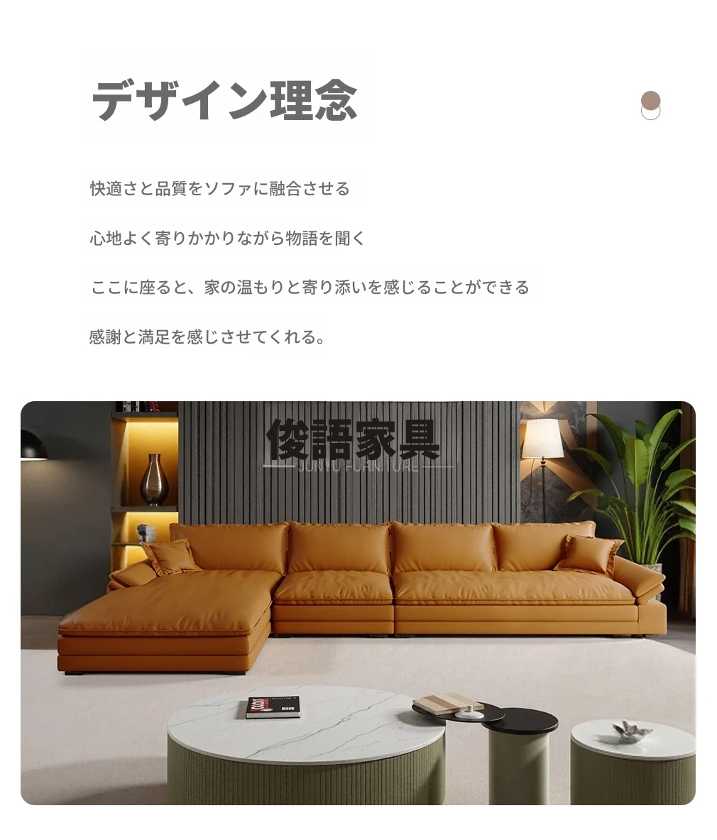 イタリアンミニマリズムのキャットクライミングレザー帆船型フェイスタイプソファ【2025新作】、広々としたL字型、リビングにぴったりな深座りデザインで、快適さとスタイルを両立!あなたの空間を格上げする一品。