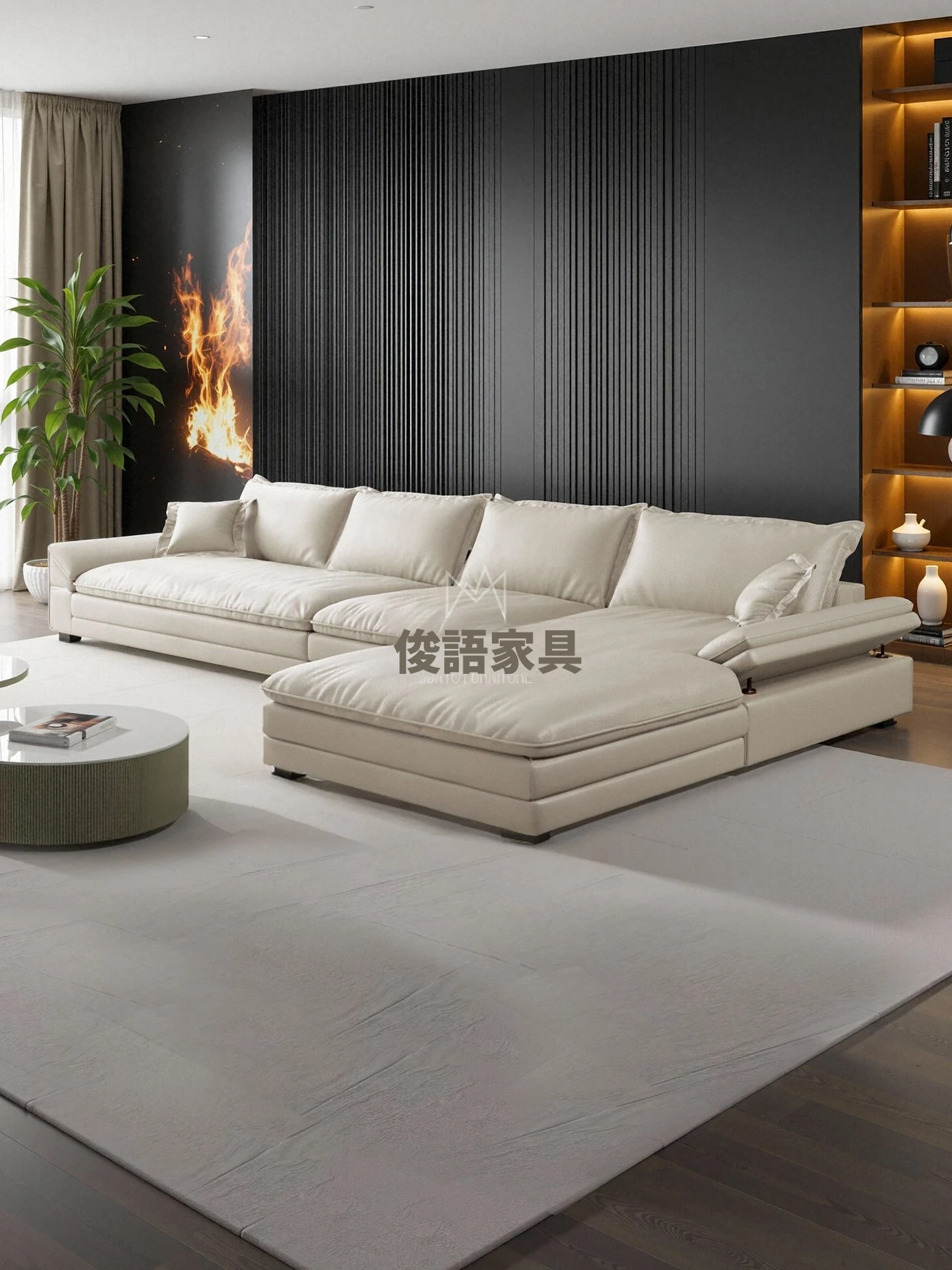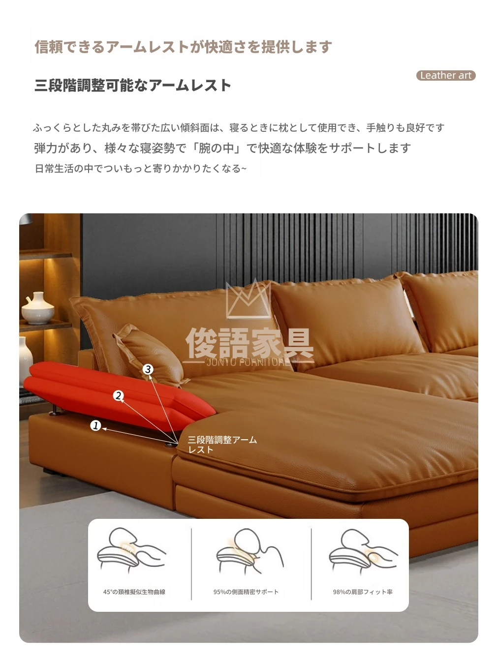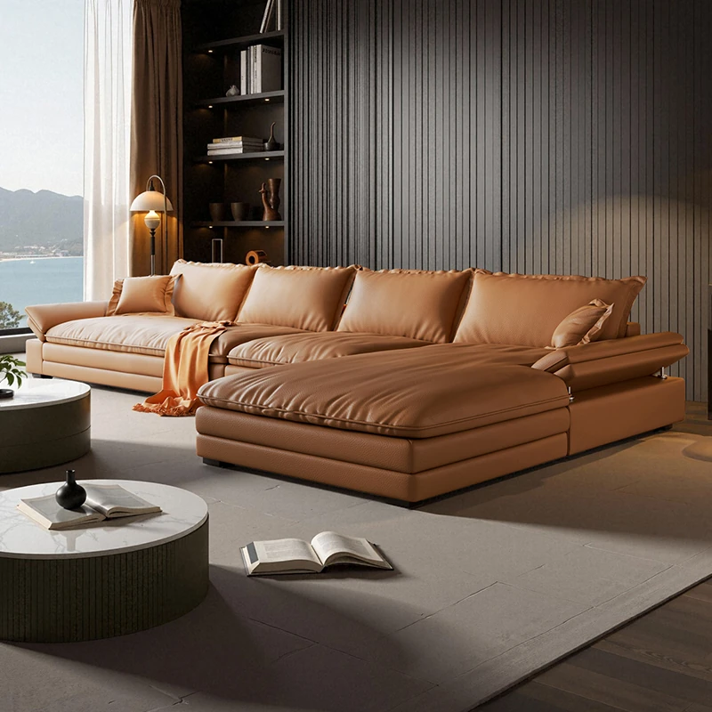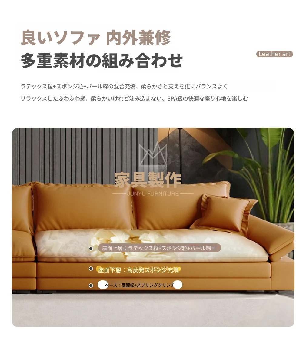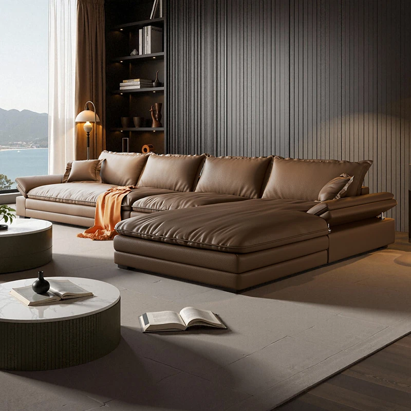 イタリアンミニマリズムのキャットクライミングレザー帆船型フェイスタイプソファ【2025新作】、広々としたL字型、リビングにぴったりな深座りデザインで、快適さとスタイルを両立!あなたの空間を格上げする一品。