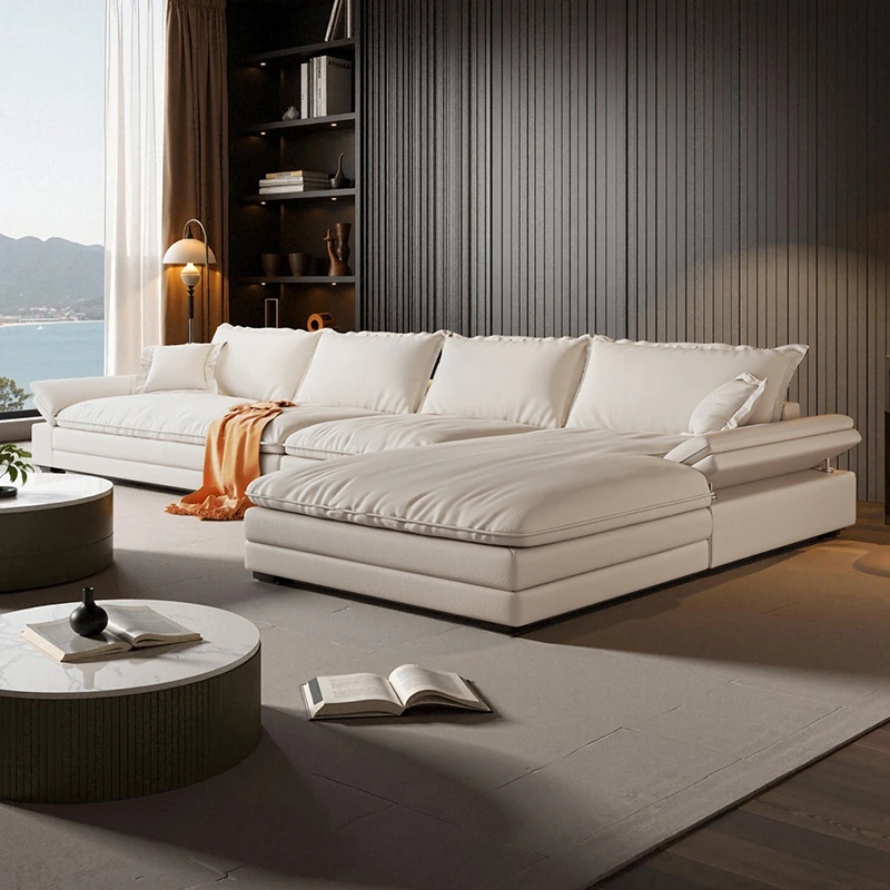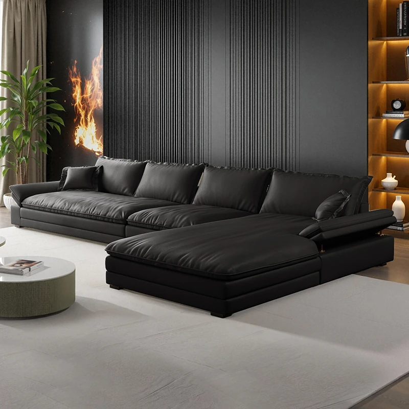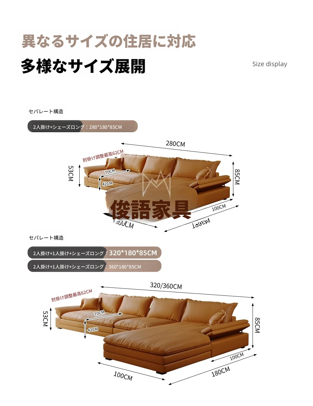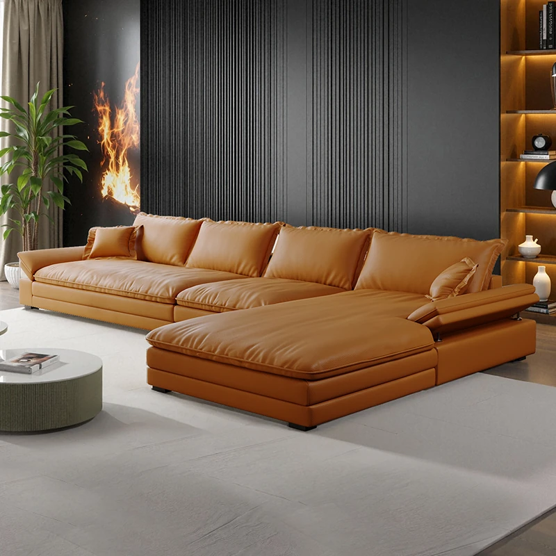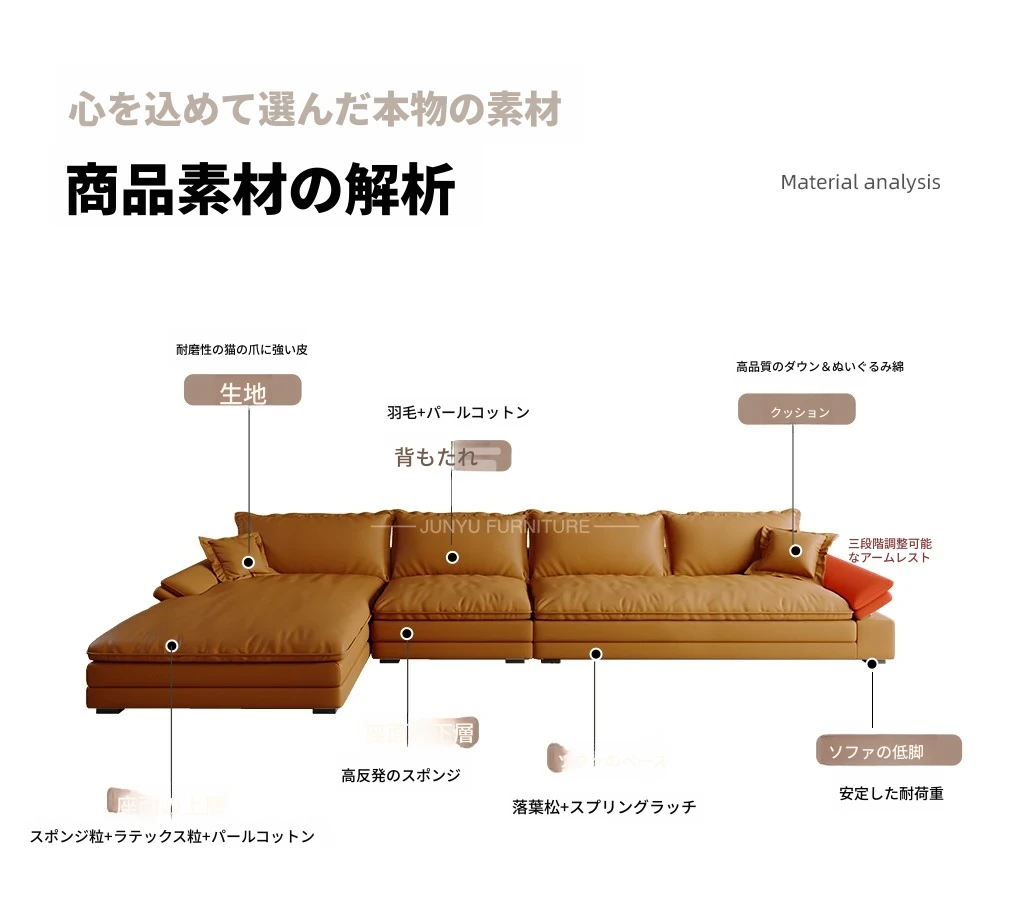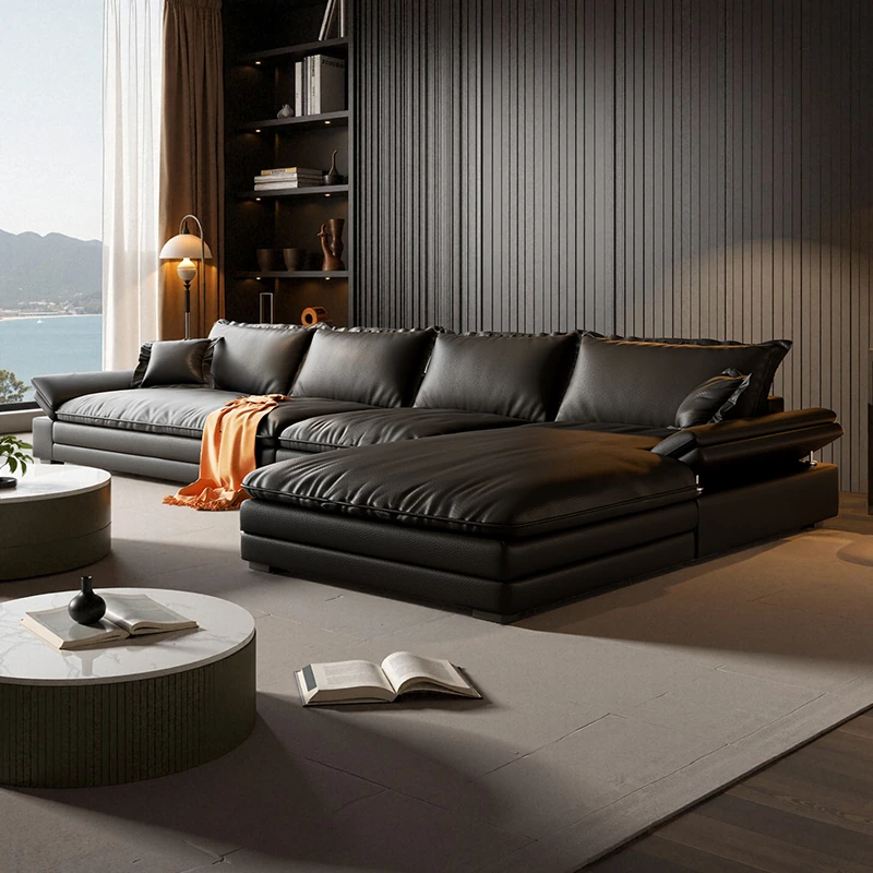 イタリアンミニマリズムのキャットクライミングレザー帆船型フェイスタイプソファ【2025新作】、広々としたL字型、リビングにぴったりな深座りデザインで、快適さとスタイルを両立!あなたの空間を格上げする一品。