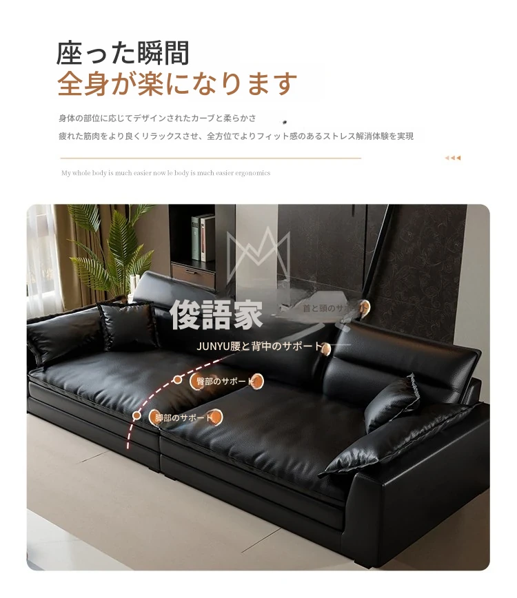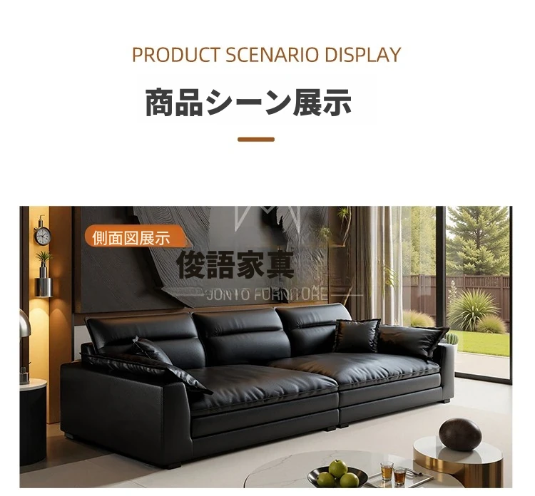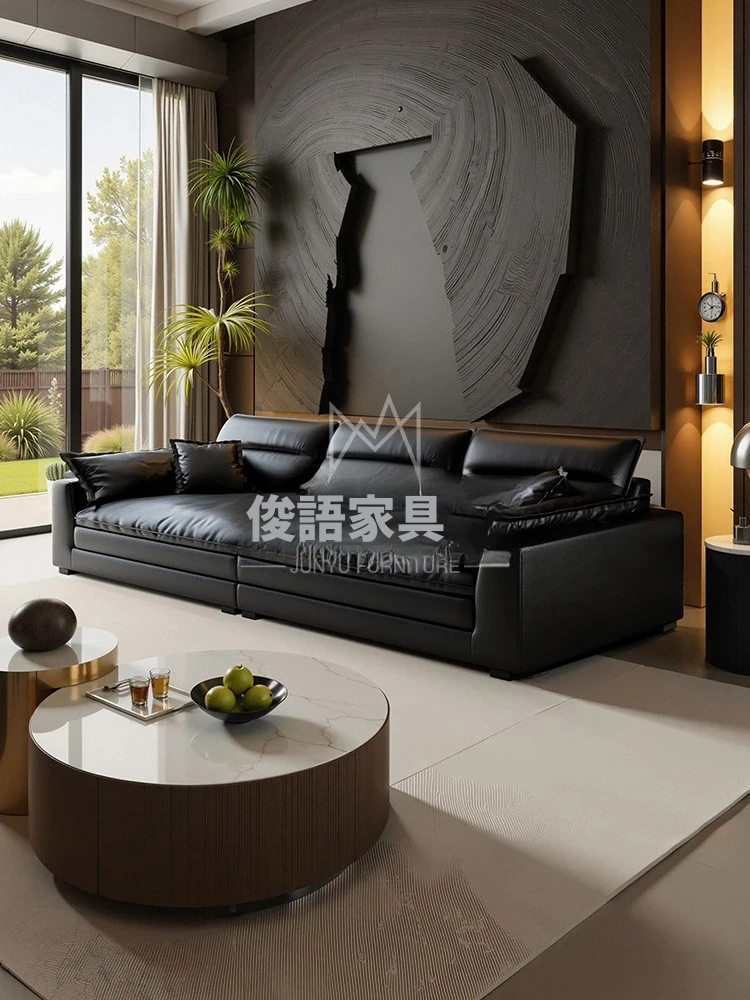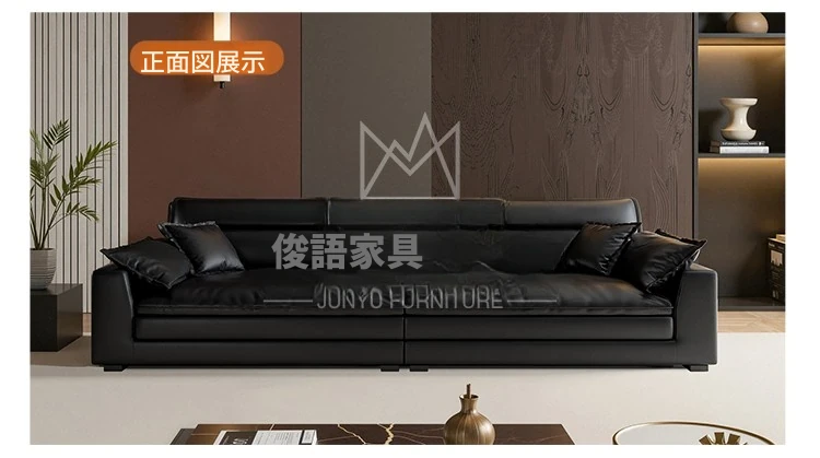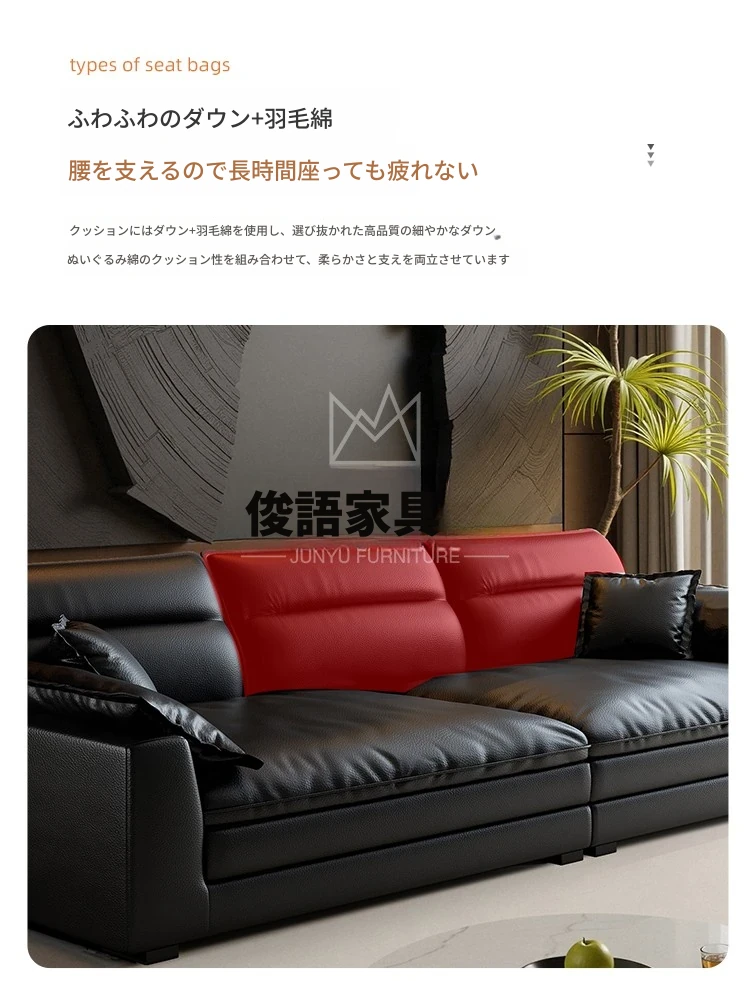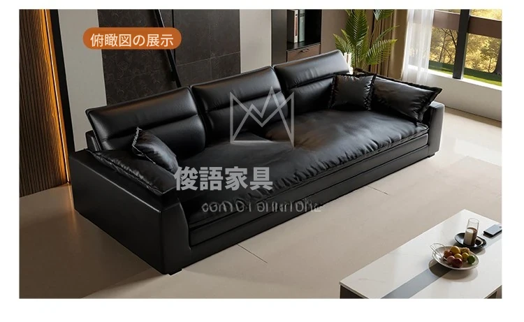 イタリアンミニマリズムの本革ソファ - モダンなブラックダウンファブリックソファ、2025年新作!シンプルで洗練されたデザインが魅力。快適な座り心地で、リビングルームをスタイリッシュに演出。