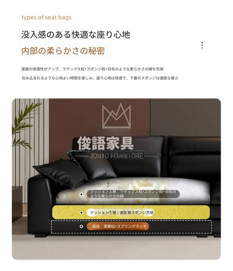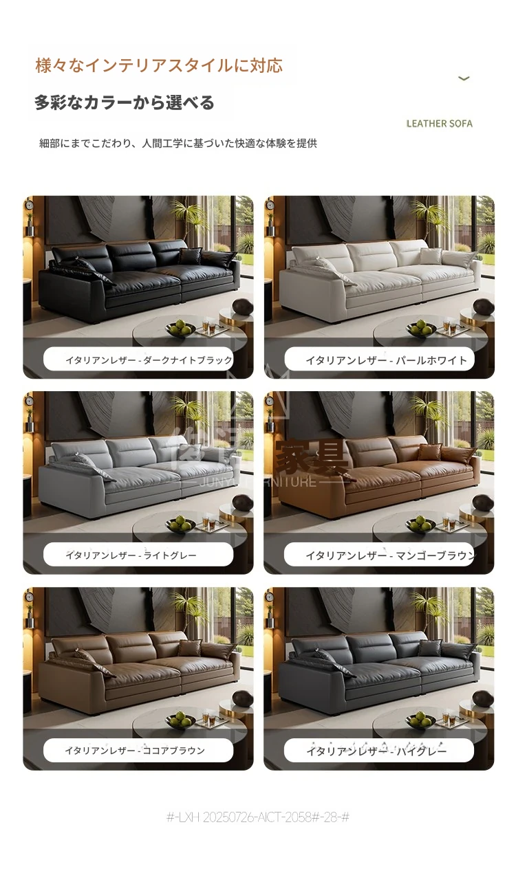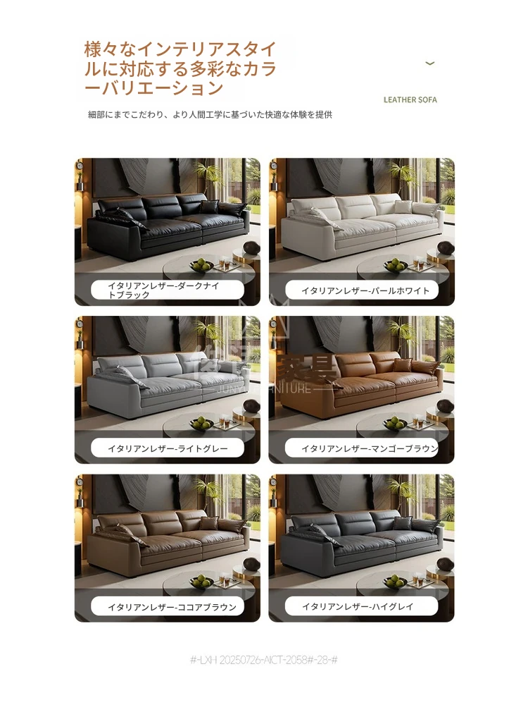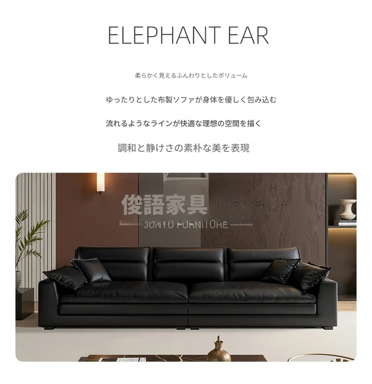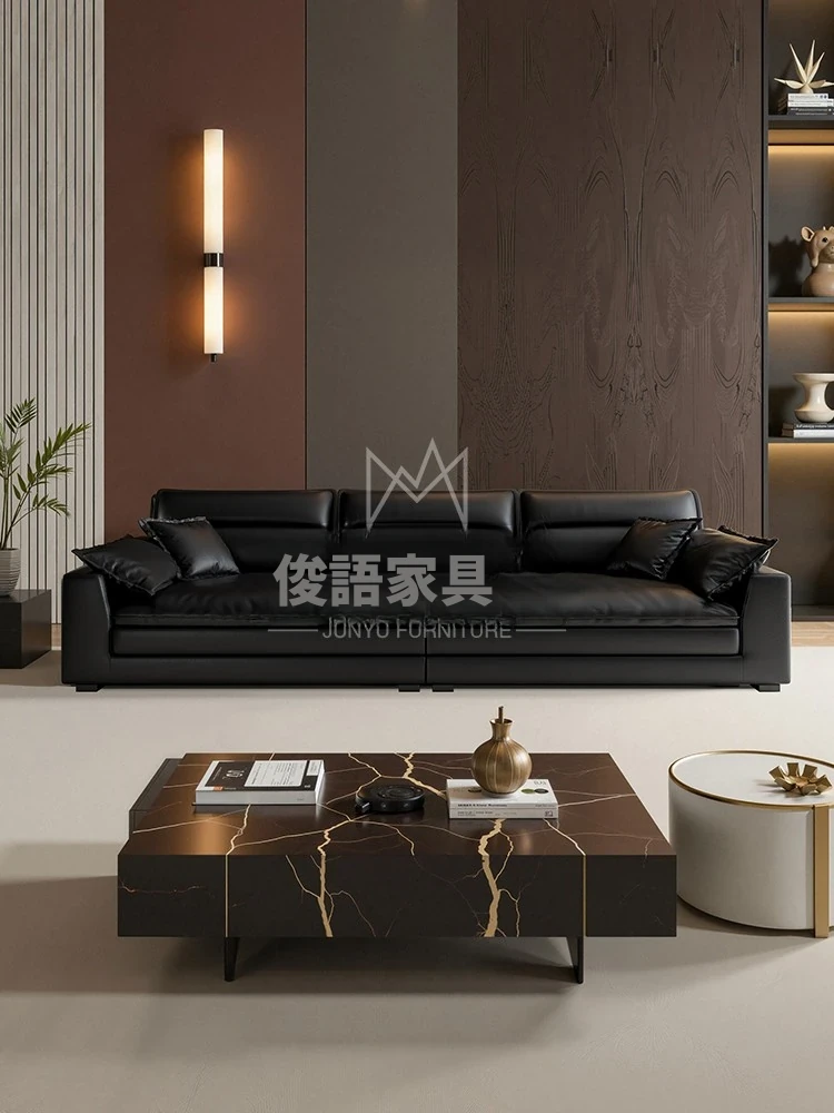 イタリアンミニマリズムの本革ソファ - モダンなブラックダウンファブリックソファ、2025年新作!シンプルで洗練されたデザインが魅力。快適な座り心地で、リビングルームをスタイリッシュに演出。