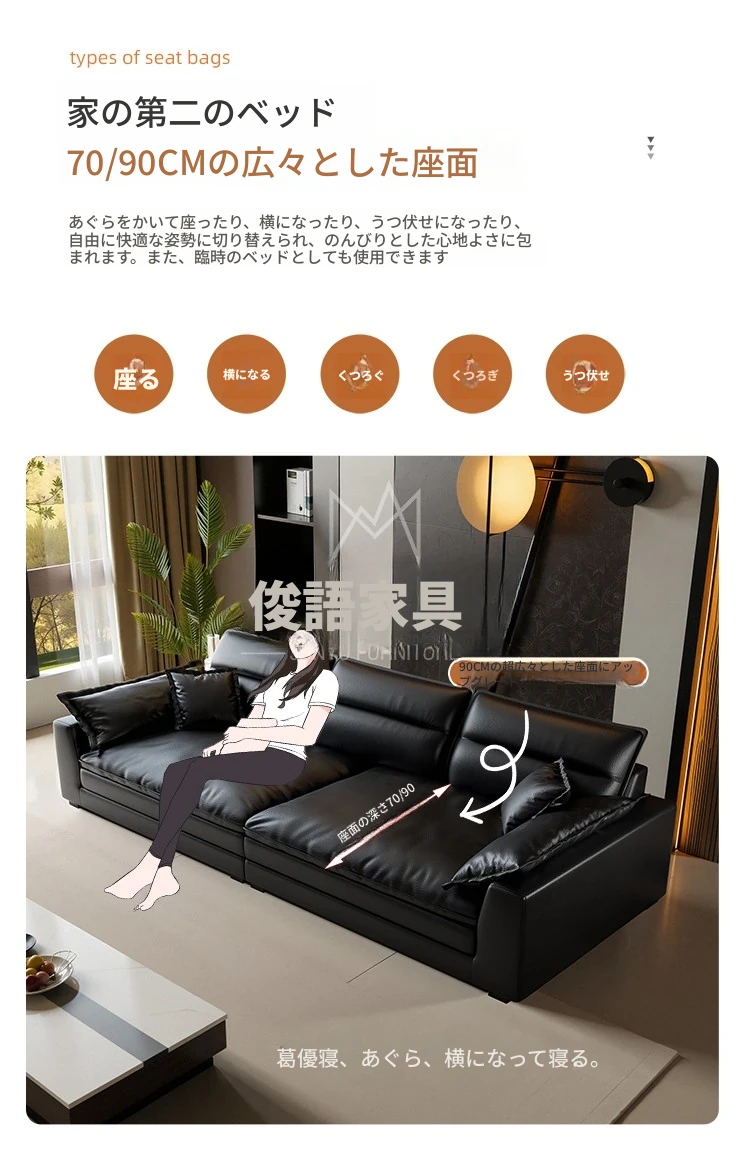 1メートル幅の快適デザイン【耐摩耗防水キャットグラブレザー】幻彩メモリラテックス粒子+雲感7A生体模倣ベルベット+UTTPハニカムスポンジクッション