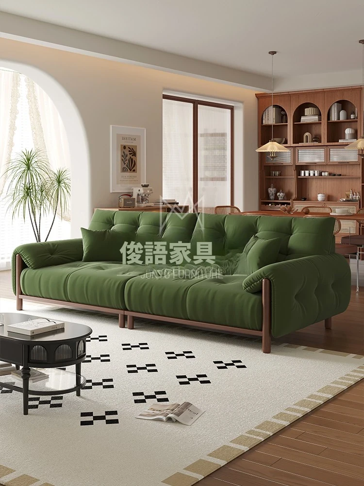 2025年新作!レトロスタイルの無垢材ソファ - 小型リビングにぴったりのパフ仕上げ、アンティーク風のオーク布ソファで、温かみのあるお部屋を演出します。おしゃれで快適な空間を叶えましょう!