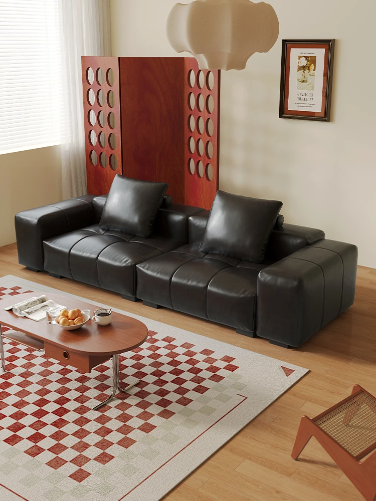 レトロ風オイルレザー モジュールソファ イタリアンラグジュアリー リビングルーム用 ヴィンテージスタイル ブラック デザイナーSABAピクセルソファで、洗練された空間を演出!