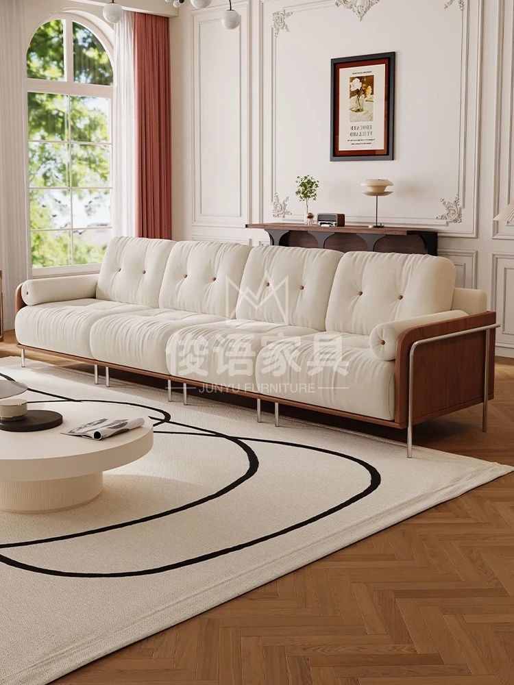 2025年新款!フランス風レトロデザインのスノーシャギーソファ。小さなお部屋にぴったりのヴィンテージスタイルで、居心地の良いリビング空間を演出します。直線的なフォルムで洗練された印象を与えます。